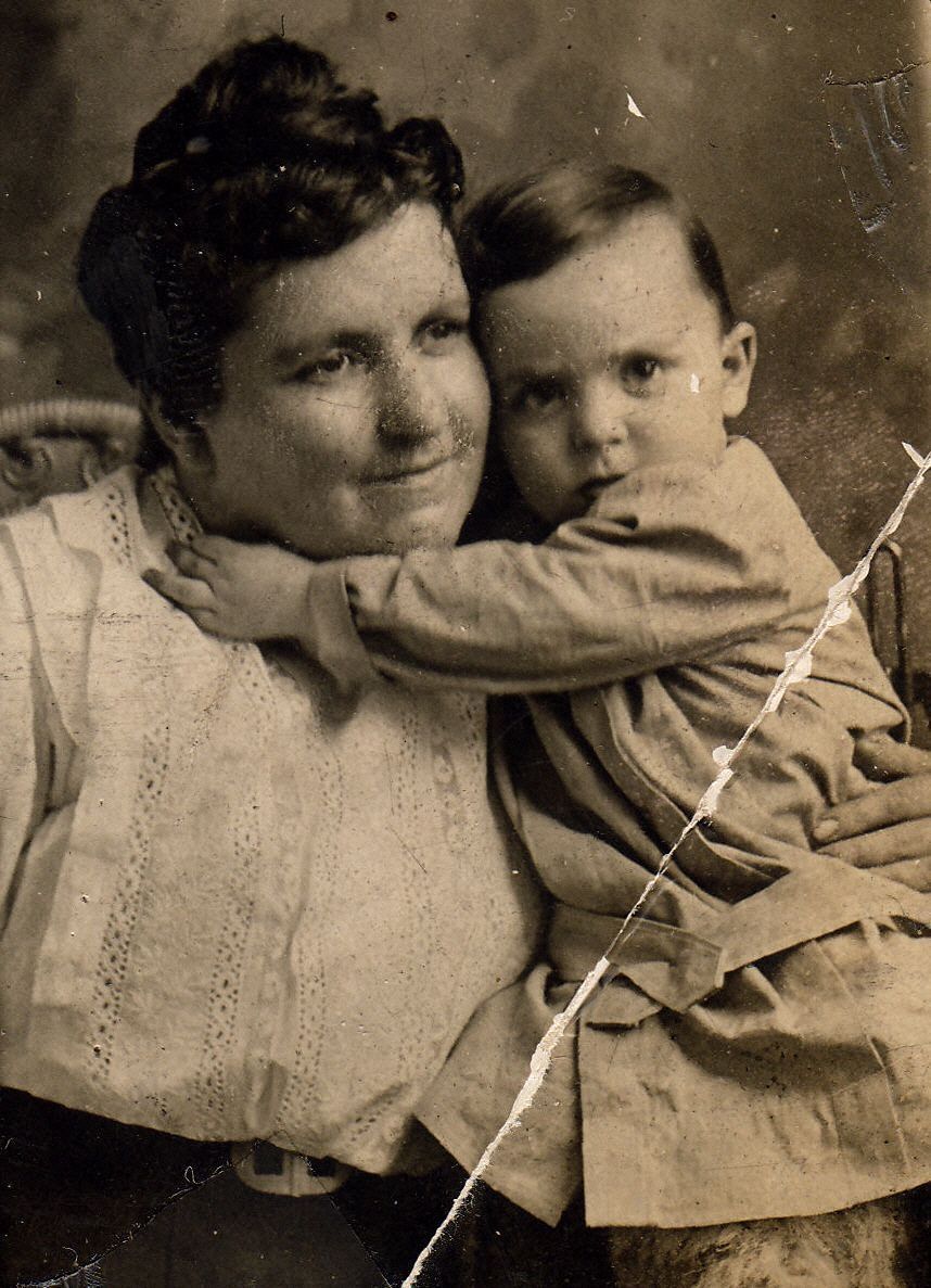 Source Citation: Elizabeth Rush (Myers) Crayne holding her son Allan Hill Crayne, item no. CGSP_AN003_0027, Lynn Myers Crayne Series, Cornerstone Genealogical Society Collection, Greene Connections Archives Project (www.GreeneConnections.com).