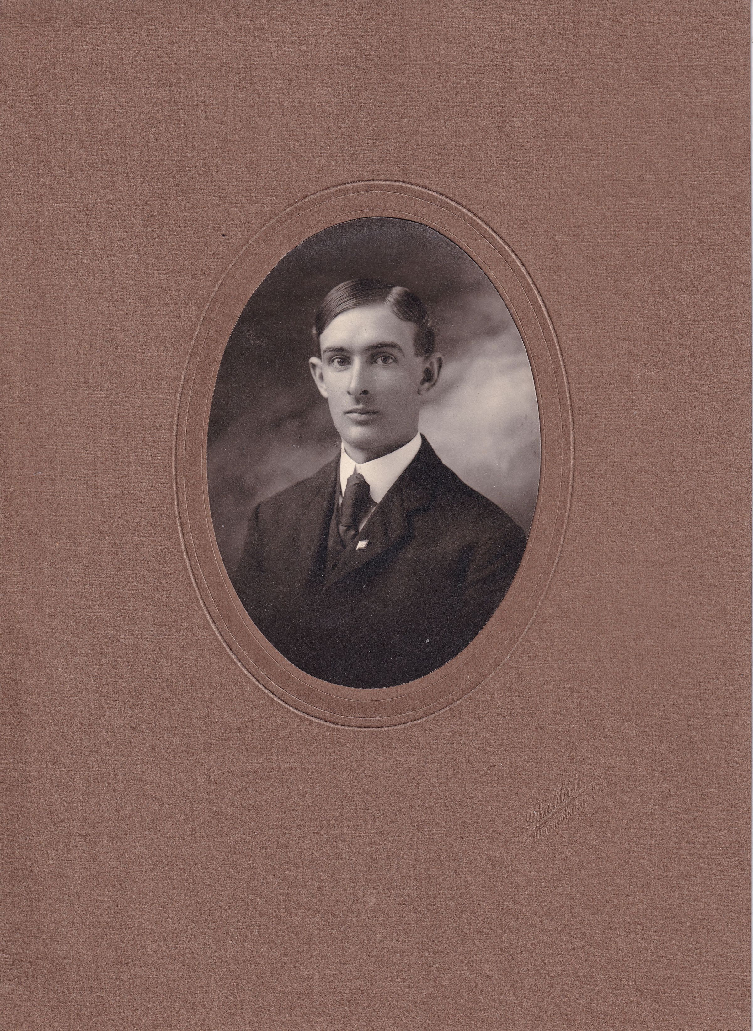 SOURCE CITATION: Ellis B. Baily [1883-1974], Waynesburg College, Class of 1906; circa 1906, image by Babbitt, Waynesburg, Pa.; item no. WAYN_AN001_1906_0002, Waynesburg University Paul R. Stewart Museum Collection; Greene Connections Archives Project (GreeneConnections.com).