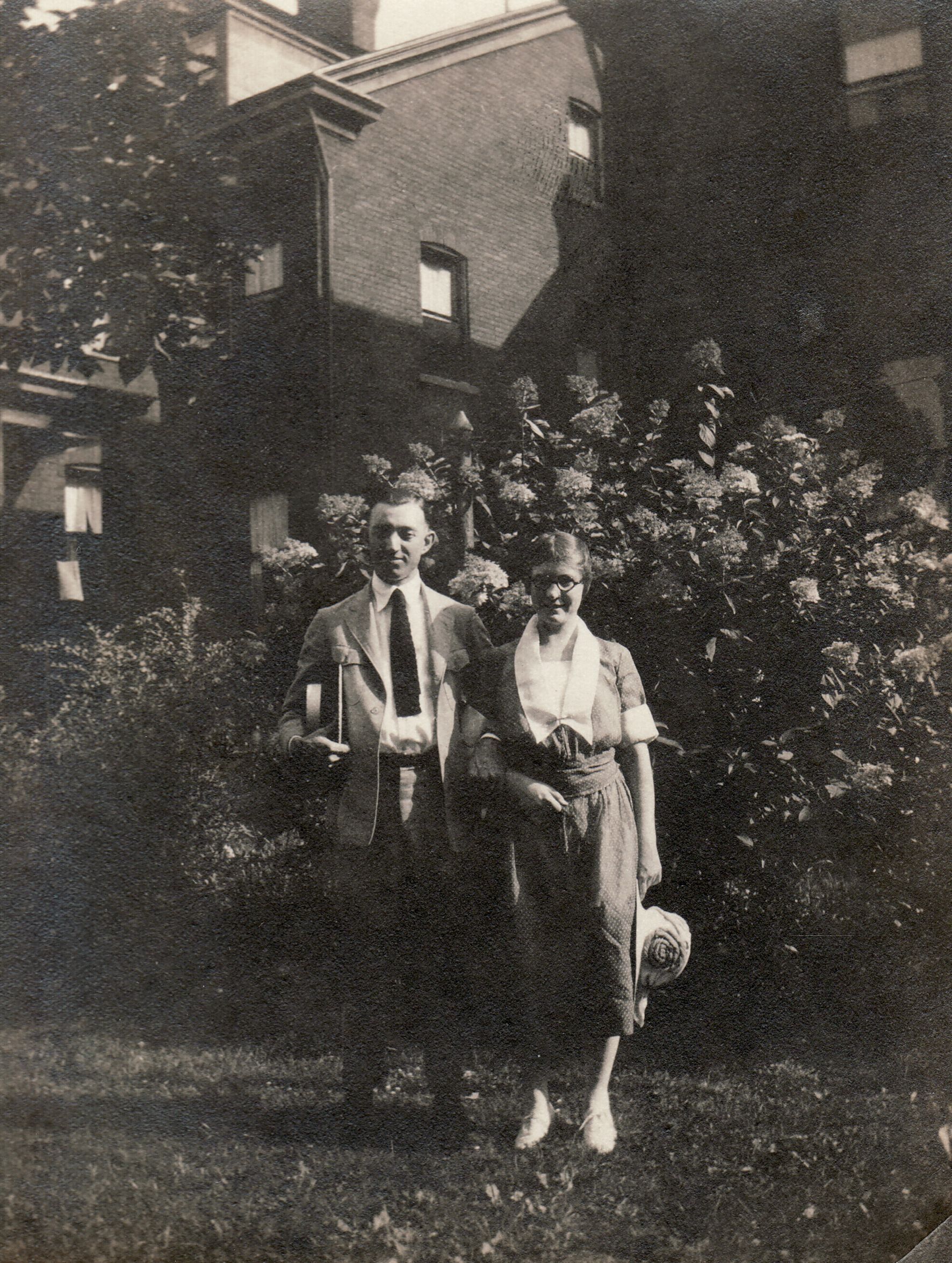 SOURCE CITATION: Emmett Foster Cary [1893-1980] and his wife, Dorothy Simpson (Minor) Cary [1894-1969], standing in the yard of the Harriet Craft (Miller) Minor home; circa 1925; item no. CARY-AN003-0001, Cary Series, Margaret Minor (Cary) Smith Collection; Greene Connections Archives Project (GreeneConnections.com).