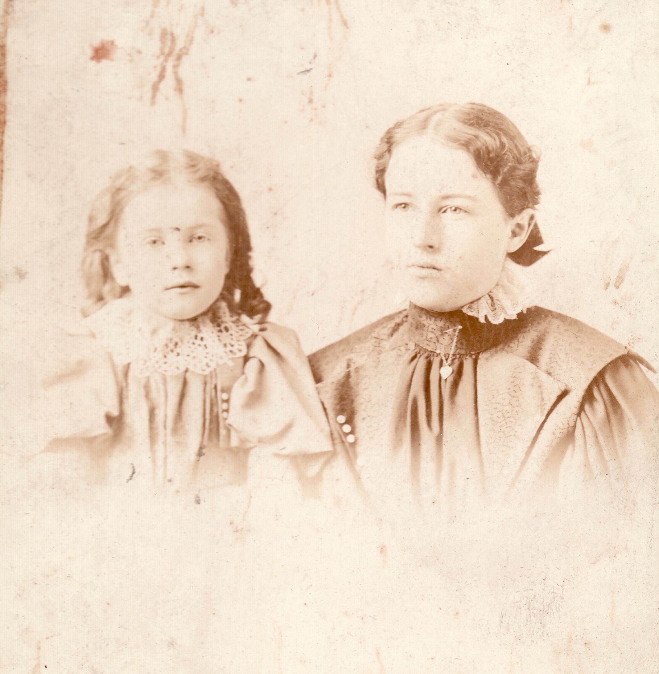SOURCE CITATION: [Left-Right]: Ethel Ruth (Rea) Hoge [1891-1971] and Anna Mary (Rea) Horner [1884-1976]; circa 1895, image by T. W. Rogers, Carmichaels, Pa.; item no. CGSP_AN006_0002_0052, Esther Ruth Hart Series, Cornerstone Genealogical Society Collection; Greene Connections Archives Project (GreeneConnections.com).