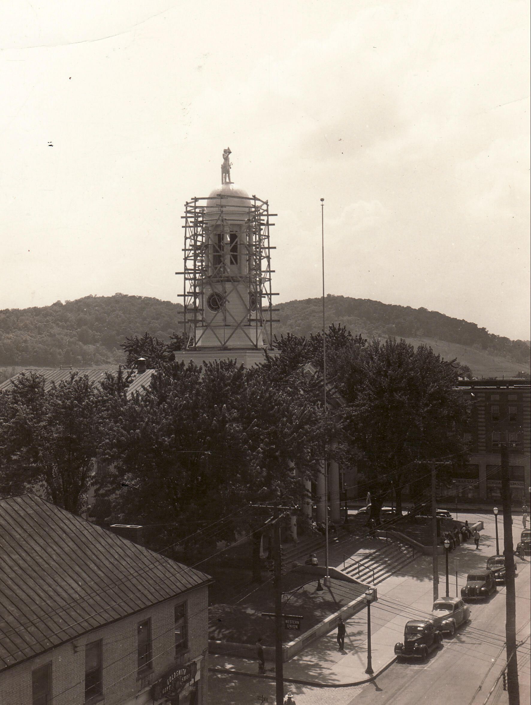 Source Citation: Greene County Courthouse and Fort Jackson Hotel in Waynesburg; item no. GCHS-AN033-0013, donated by Jane Ann Thompson; Greene County Historical Society Collection, Greene Connections Archives Project (www.GreeneConnections.com).