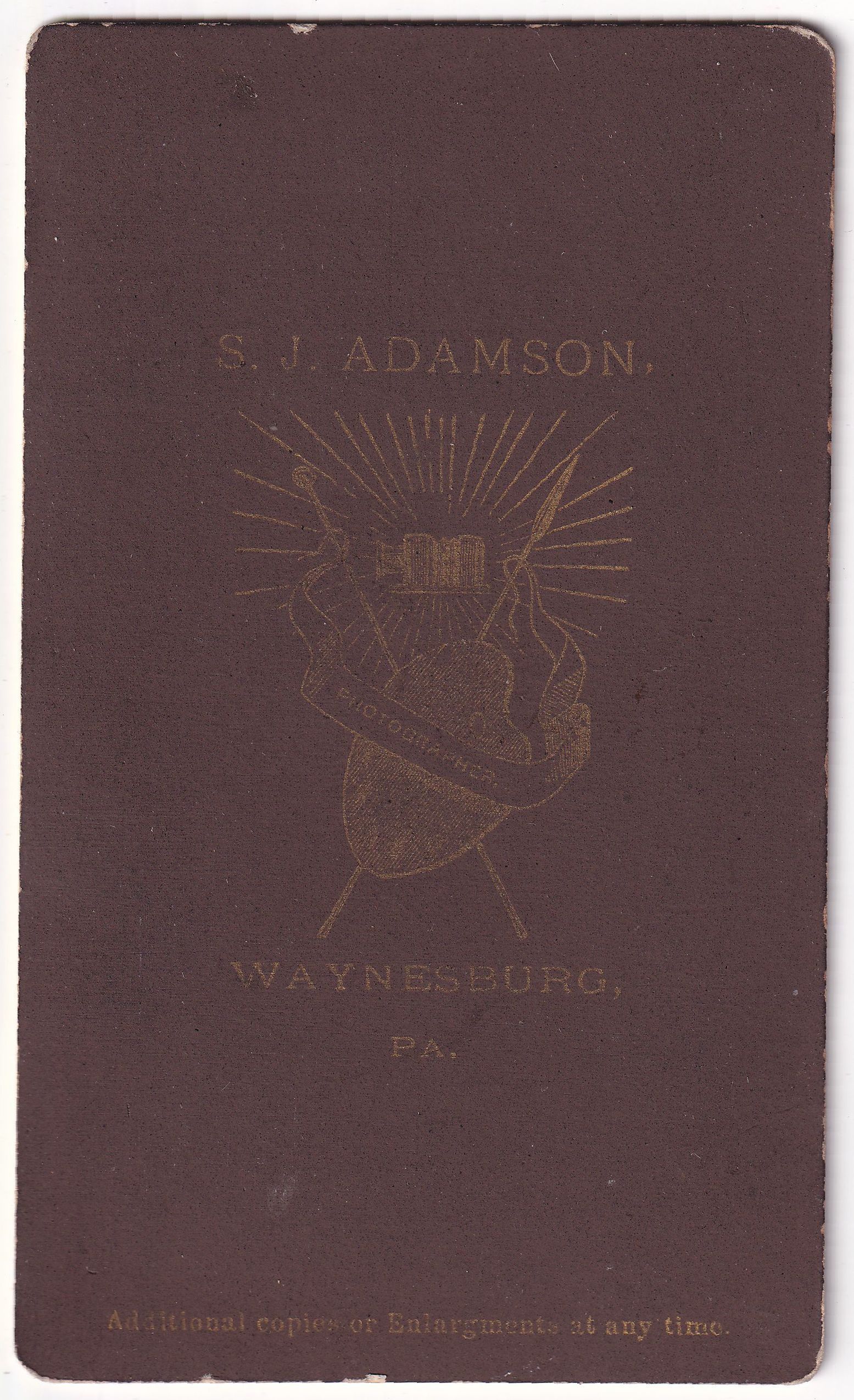 Source Citation: Pauley-Thompson Album, Photo 22 - Delia (Sowers) Porter; circa 1870-1890, image by S. J. Adamson, Photographer, Waynesburg, Pa.; item no. CGSP_AN002_0022, Cornerstone Genealogical Society Collection; Greene Connections Archives Project (GreeneConnections.com).
