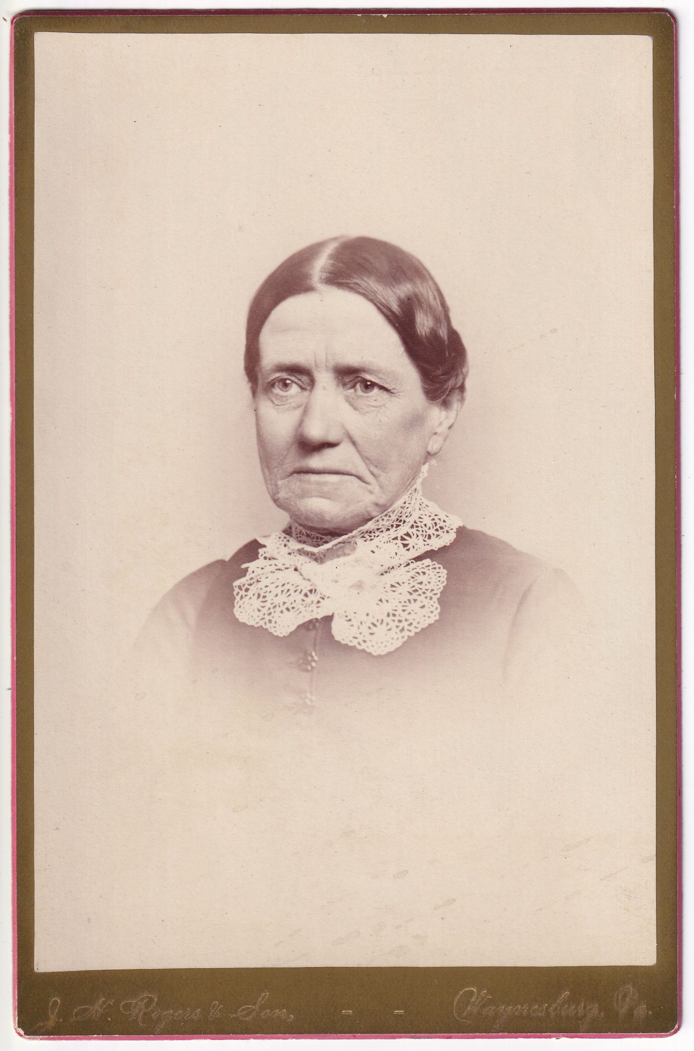 Source Citation: Pauley-Thompson Album, Photo 47 - Mary Jane (Jennings) Pauley; circa 1880-1885, image by J. H. Rogers & Son, Waynesburg, Pa.; item no. CGSP_AN002_0047, Cornerstone Genealogical Society Collection; Greene Connections Archives Project (GreeneConnections.com).