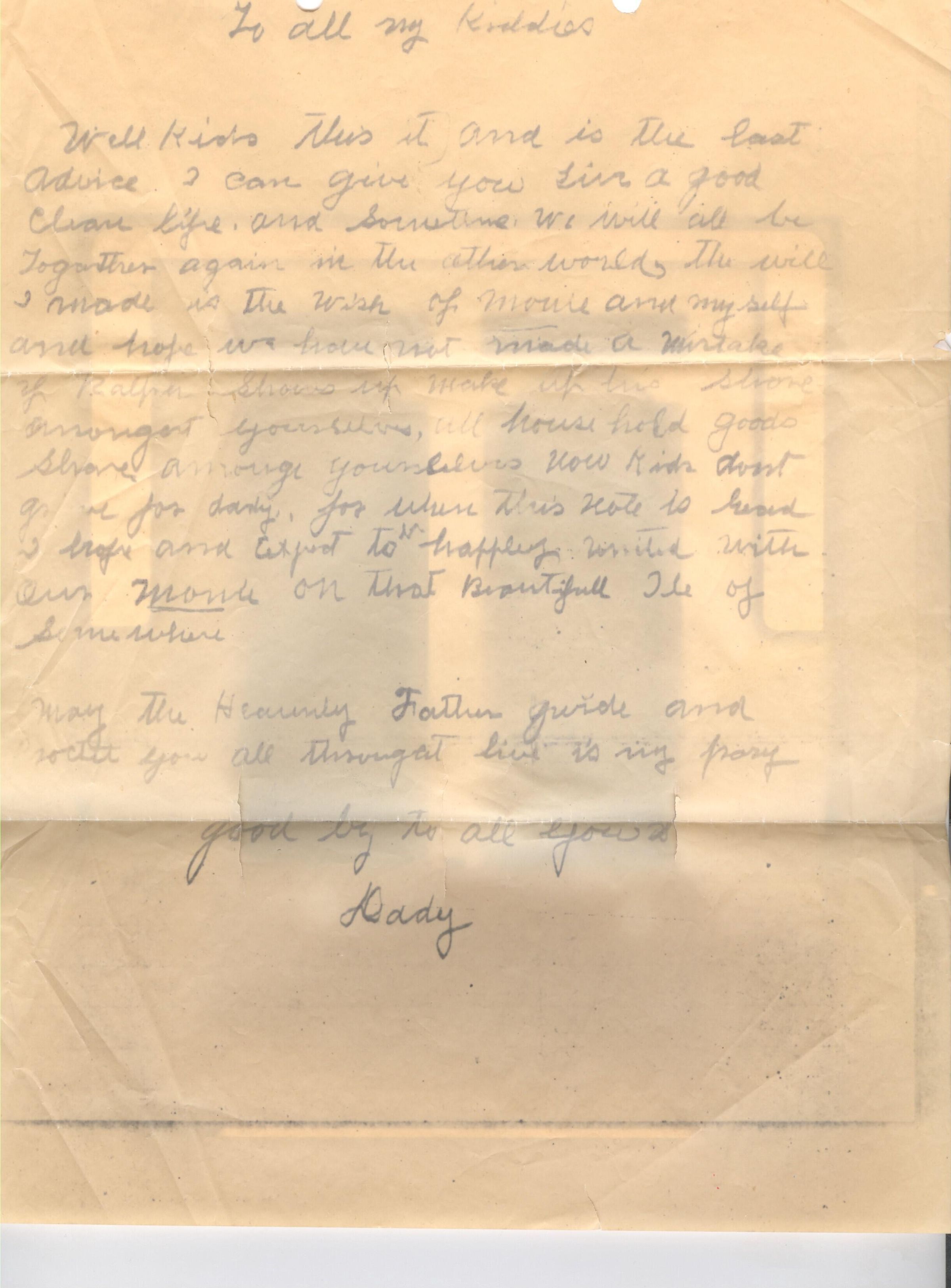 Source Citation: J. H. and Elizabeth (Throckmorton) Wood Family Bible - Letter from William Sheridan Wood [1868-1958] to his children; item no. WOOD-AN001-0020, Rev. John Harrison and Elizabeth (Throckmorton) Wood Collection, shared by Bill Anderson, Greene Connections Archives Project (www.GreeneConnections.com).