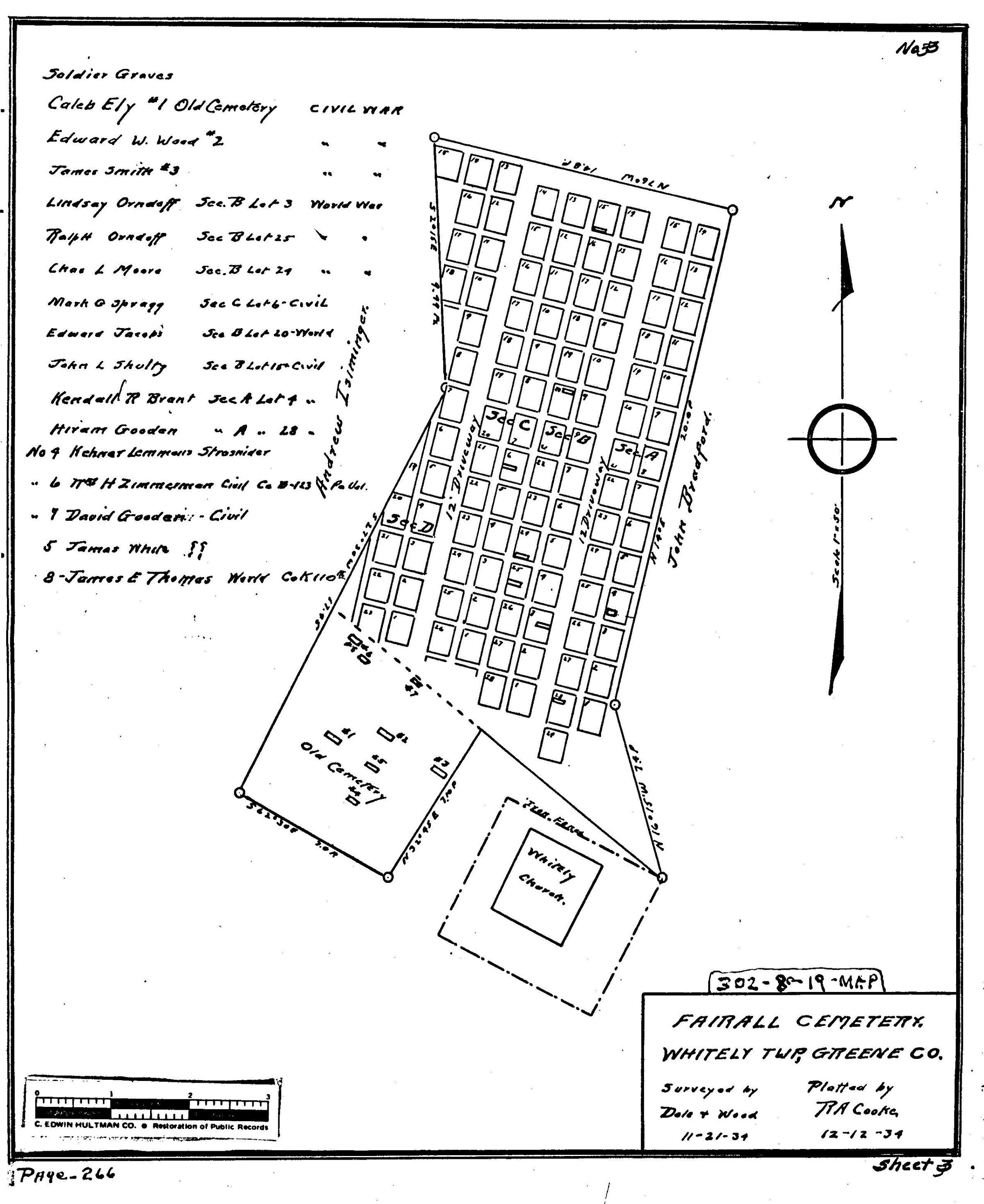 During the 1930s, the Works Progress Administration (renamed in 1939 as the Work Projects Administration) provided jobs by employing individuals to locate and map area cemeteries. As a part of these surveys, workers also listed veterans buried at each cemetery. The Clerk of Courts Office at the Greene County Courthouse in Waynesburg, Pennsylvania, holds one set of the plat maps copied from the originals created during this project. In 2019, these maps were subsequently scanned and researched for the Greene Connections: Greene County, Pennsylvania Archives Project.