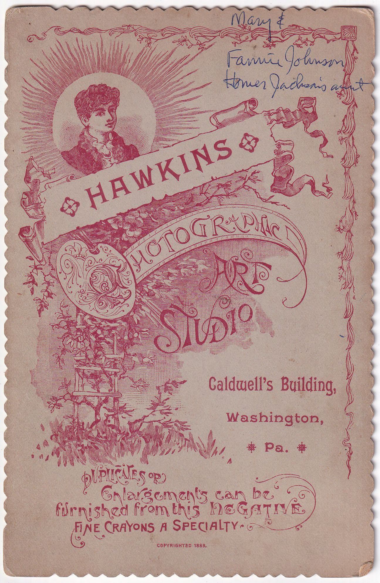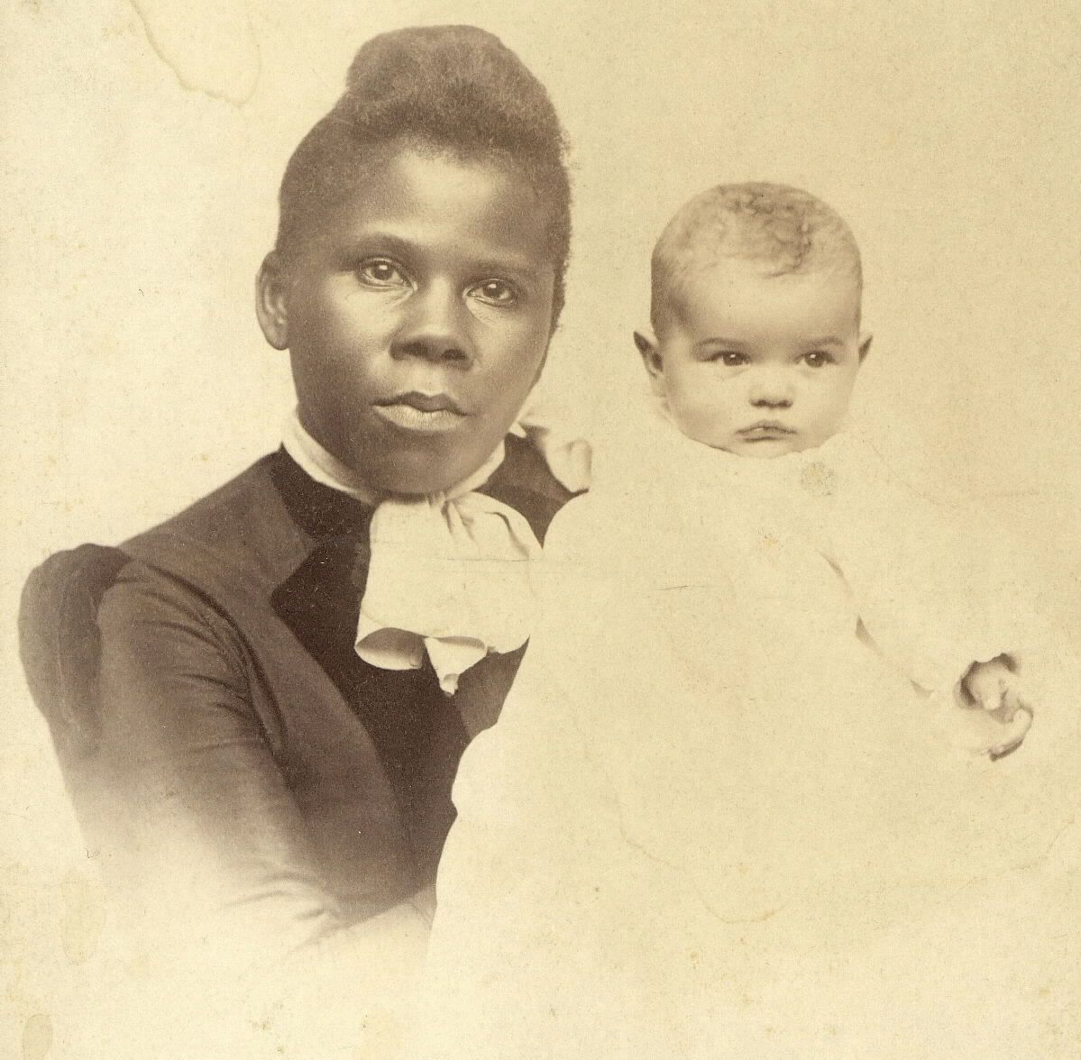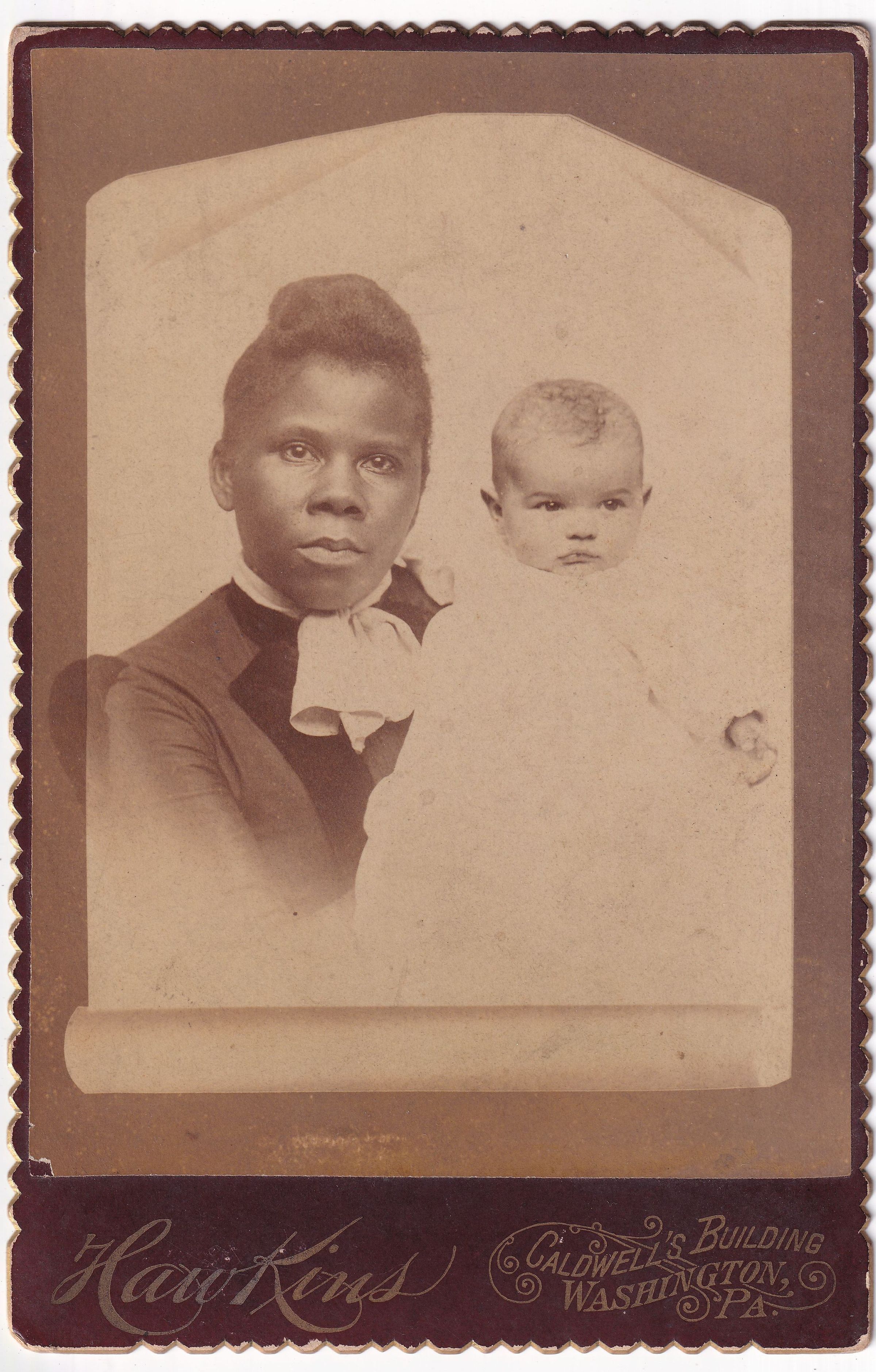 SOURCE CITATION: Fannie Johnson holding Mary Inghram (Denny) Weaver [1891-1972]; circa 1891-1892, image by Hawkins, Caldwell's Building, Washington, Pa.; item no. DENN-AN002-0018, Josephine Denny Collection, shared by Farley Toothman; Greene Connections Archives Project (GreeneConnections.com).