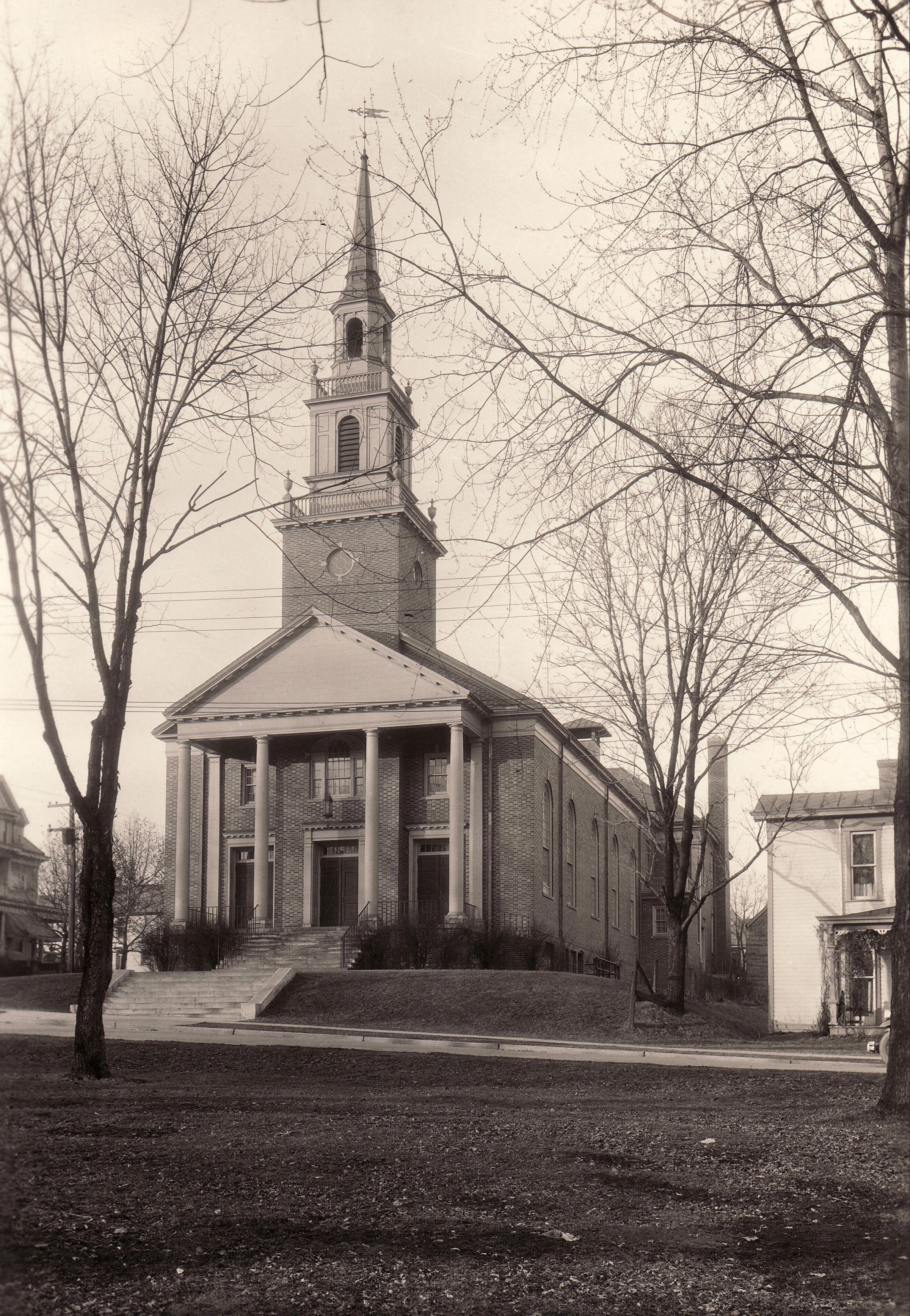 Source Citation: First Presbyterian Church on the northeast corner of College and Richhill Streets in Waynesburg; item no. GCHS-AN033-0009, donated by Jane Ann Thompson; Greene County Historical Society Collection, Greene Connections Archives Project (www.GreeneConnections.com).