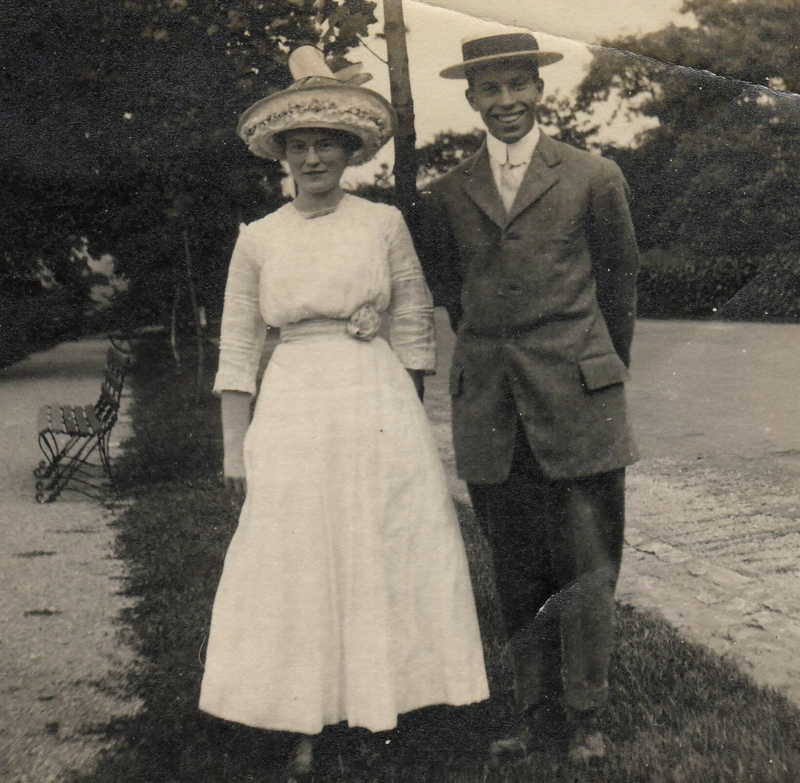 SOURCE CITATION: Frances (Cook) Livingood [1887-1926] with her first cousin, Walter Cook Goodwin [1893-1975]; circa 1910-1920; item no. CAND_AN001_0010, Cook Series, Candice Lynn Buchanan Collection; Greene Connections Archives Project (GreeneConnections.com).