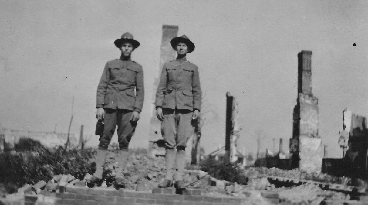 Source Citation: Francis Benton Moore [right] - Company K, 110th Infantry, 28th Division, World War I, item no. TAYL-AN001-0003, Elizabeth Taylor Collection, shared by H. Taylor, Greene Connections Archives Project (www.GreeneConnections.com).