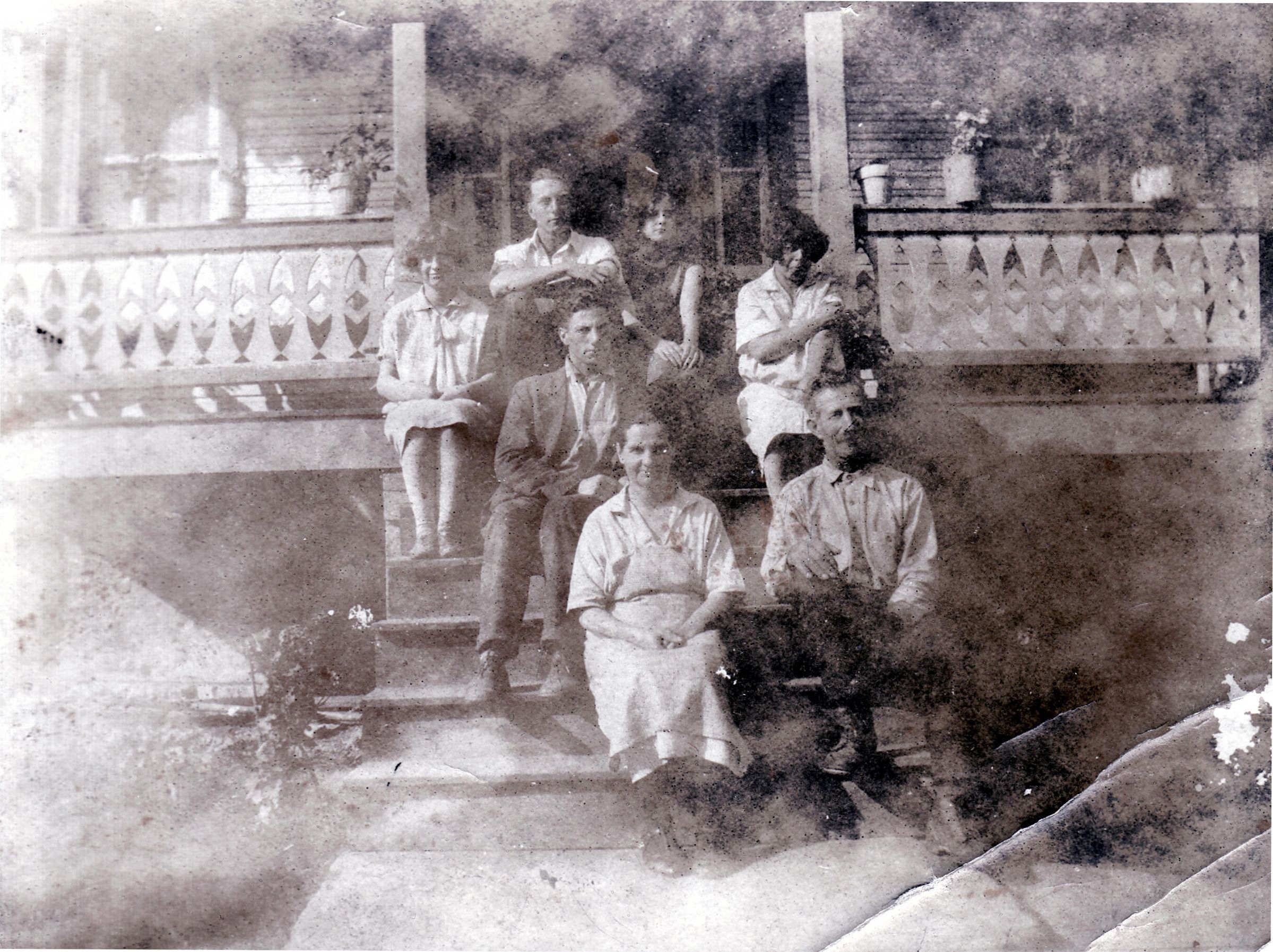 Source Citation: [Left-Right]: BACK - Mae (Headlee) Eddy [1911-2001], Cecil Hamilton Headlee [1904-1977], Vada Faye (Headlee) Hoy [1911-1933], Edith Grace Headlee [1909-1970], MIDDLE - Homer Headlee [1906-1983], FRONT - Laura (South) Headlee [1881-1954], Francis Marion Headlee [1875-1947]; dated 1927; item no. STEW-AN001-0006, Headlee Series, Carl Headlee Collection, Greene Connections Archives Project (www.GreeneConnections.com).