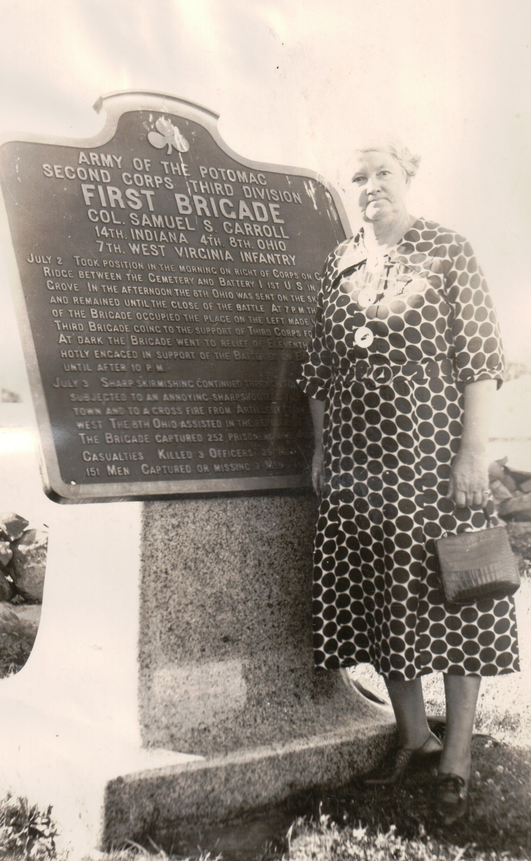 Source Citation: Frank Jones Album - Lydia (White) Jones with plaque that marks position occupied by 7th W. Va. Volunteer Infantry, item no. GILB-AN001-0001-0032, Frank Jones Album Series, Zenia Gilbert Collection, Greene Connections Archives Project (www.GreeneConnections.com).