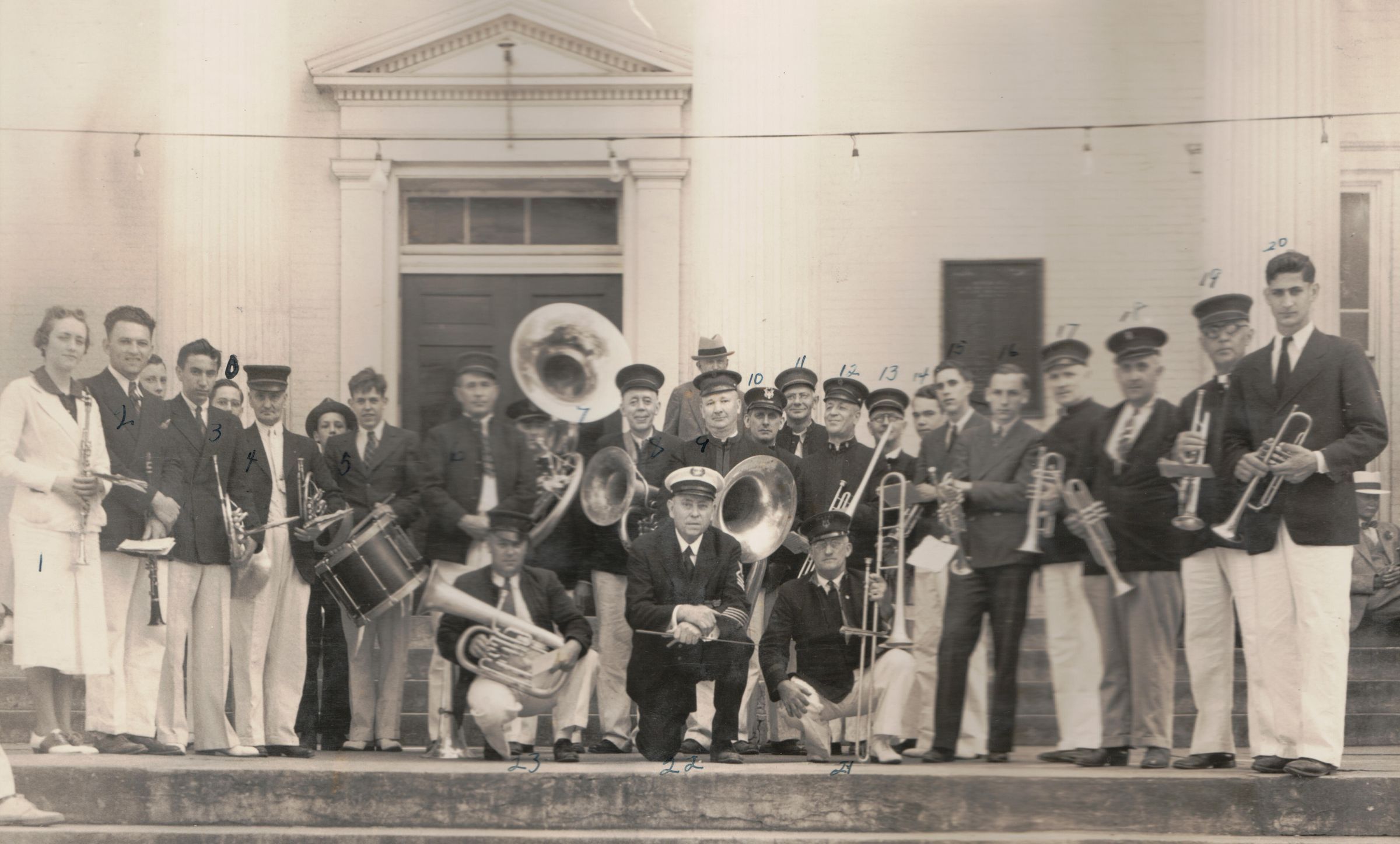Source Citation: Frank Jones Album - Dated 30 May 1938, Musicians at the Greene County Courthouse, Waynesburg, Pennsylvania, item no. GILB-AN001-0001-0109, Frank Jones Album Series, Zenia Gilbert Collection, Greene Connections Archives Project (www.GreeneConnections.com).