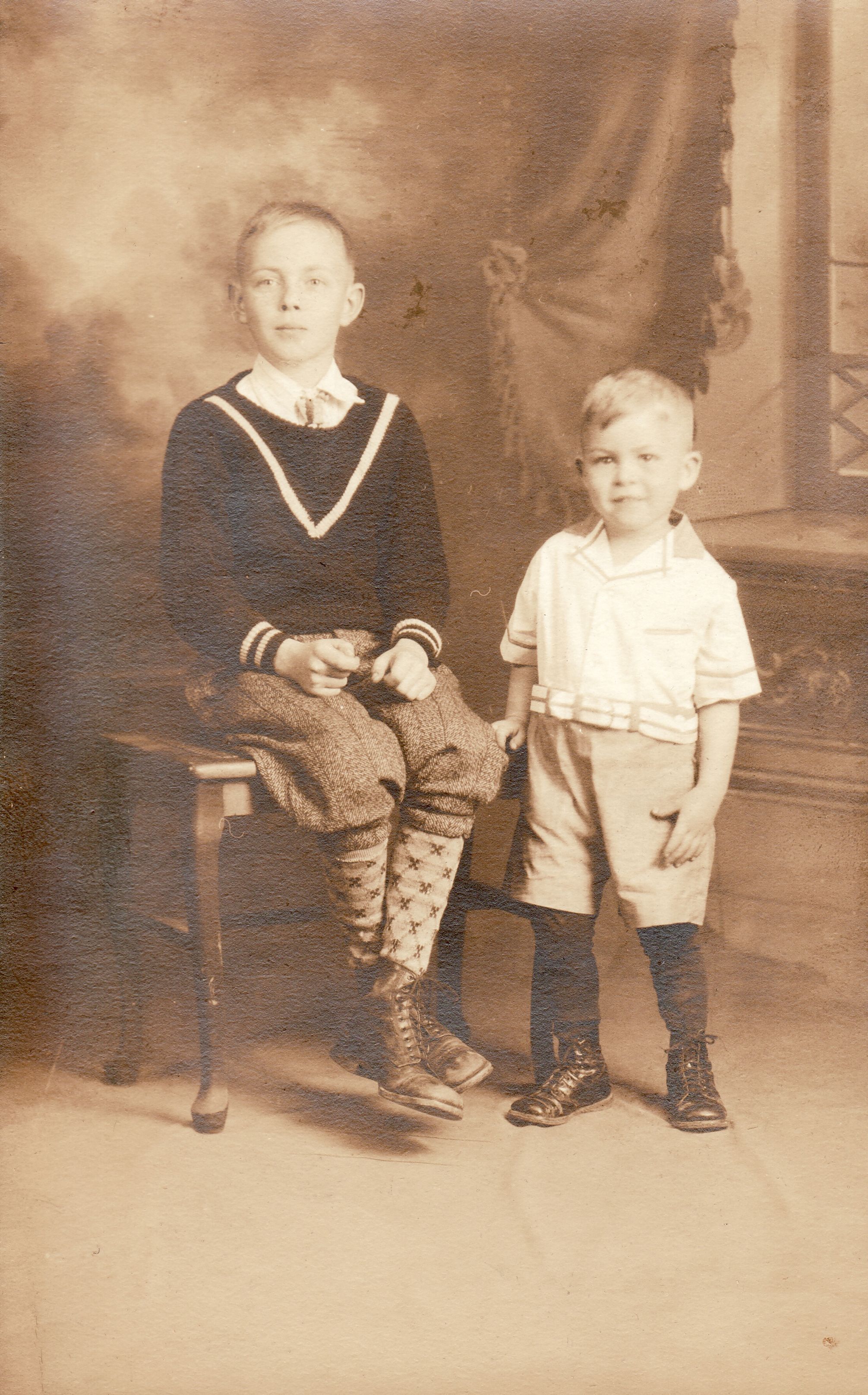 Source Citation: [Left-Right]: Fred Leroy Smith and Billy Harry Smith - sons of John Freeman Smith & Cora Edith Jacobs, item no. PALO-AN002-0028, Smith Series, Sharon Roxane (Smith) Palone Collection, Greene Connections Archives Project (www.GreeneConnections.com).