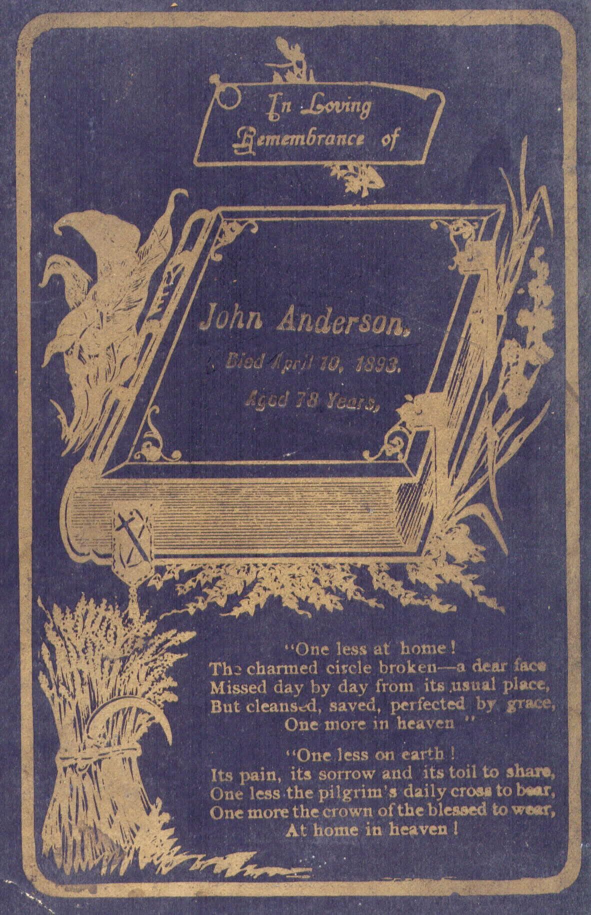 Funeral card of John AndersonEntry/Object ID