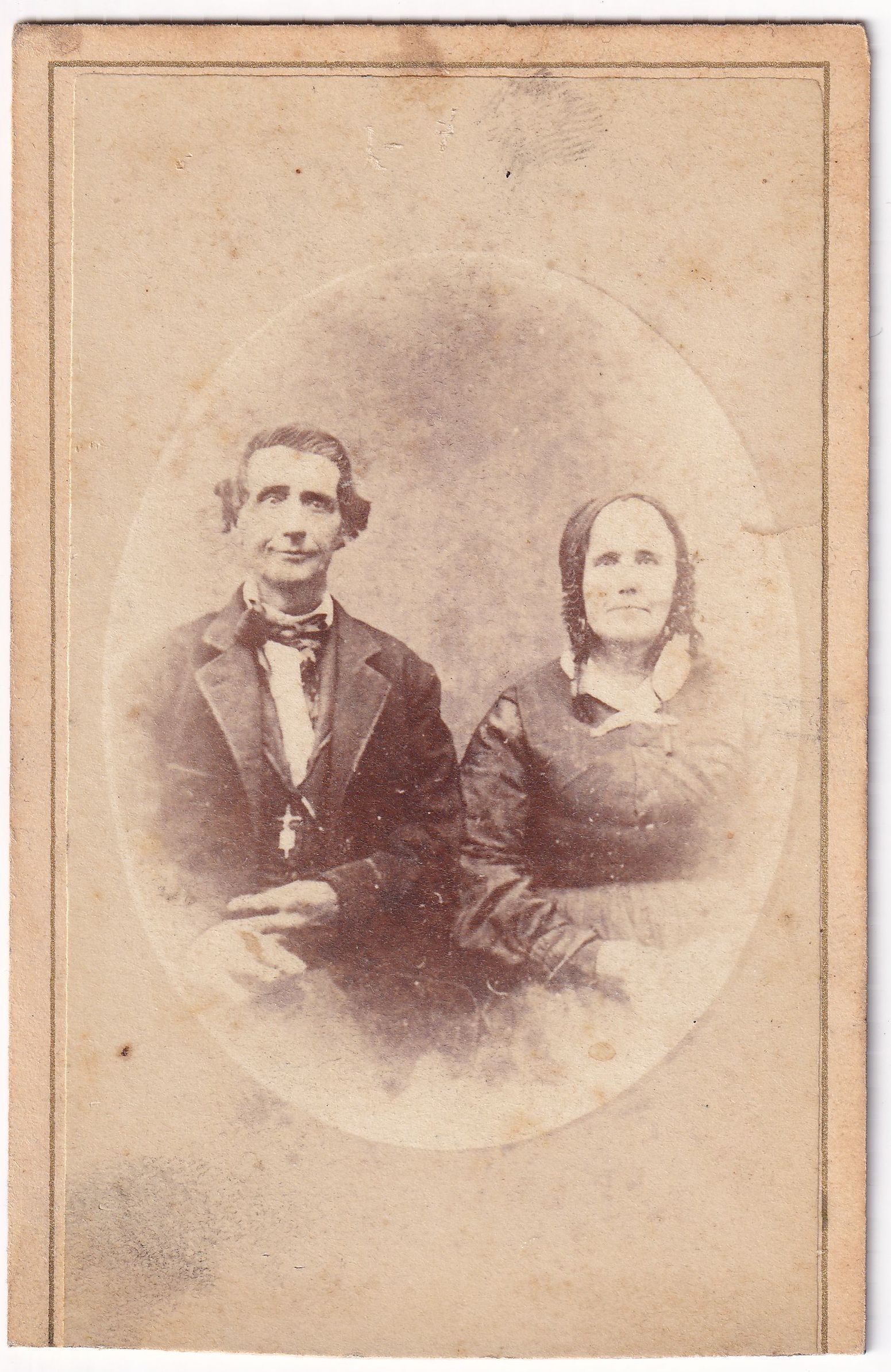 SOURCE CITATION: Geho Album 01, Photo 04 - Adam Geho [1804-1871] and his wife, Zibiah (Garrison) Geho [1807-1898]; circa 1860-1870, image by Shoaff's Gallery, Over Palace Fashion, Fort Wayne, Ind.; item no. CMBL-AN004-0001-0004, George Lindsey Cole Series, Matt W. Cumberledge Collection; Greene Connections Archives Project (GreeneConnections.com).