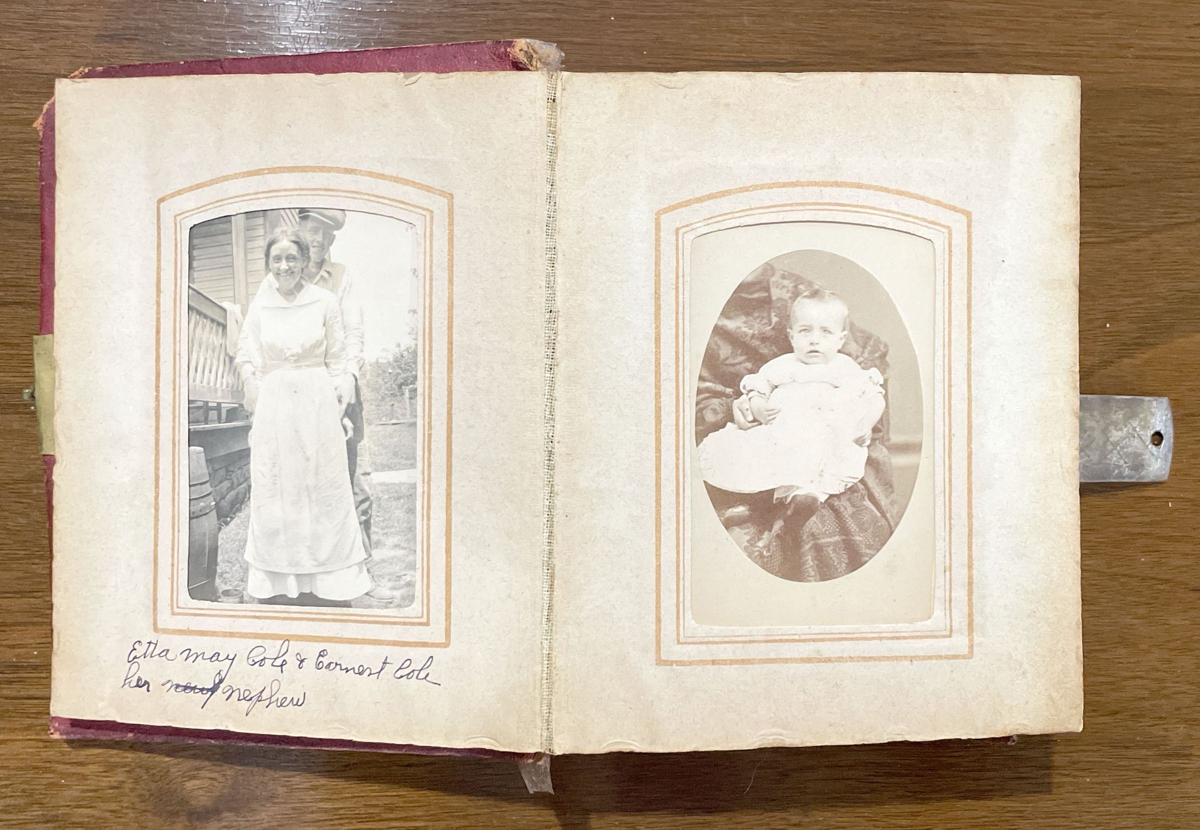 Geho Album 01 originally belonged to Zibiah (Garrison) Geho [1807-1898] - wife of Adam Geho, daughter of Benjamin Garrison. The album includes pictures of Zibiah's children and grandchildren, as well as the family of her sister, Sophia (Garrison) Campbell. Nearly all images are identified and have been maintained in original order. Most album captions were provided by George Lindsey Cole [1897-1987], grandson of George Cole [1844-1908] and Elizabeth (Geho) Cole [1848-1920], great-grandson of Adam Geho [1804-1871] and Zibiah (Garrison) Geho [1807-1898]. George Lindsey Cole [1897-1987] passed the album to his friend Kay Hibbs, who gave it to local historian Matt W. Cumberledge. Matt owned and shared the album with the Greene Connections: Greene County, Pennsylvania Archives Project in 2025.
