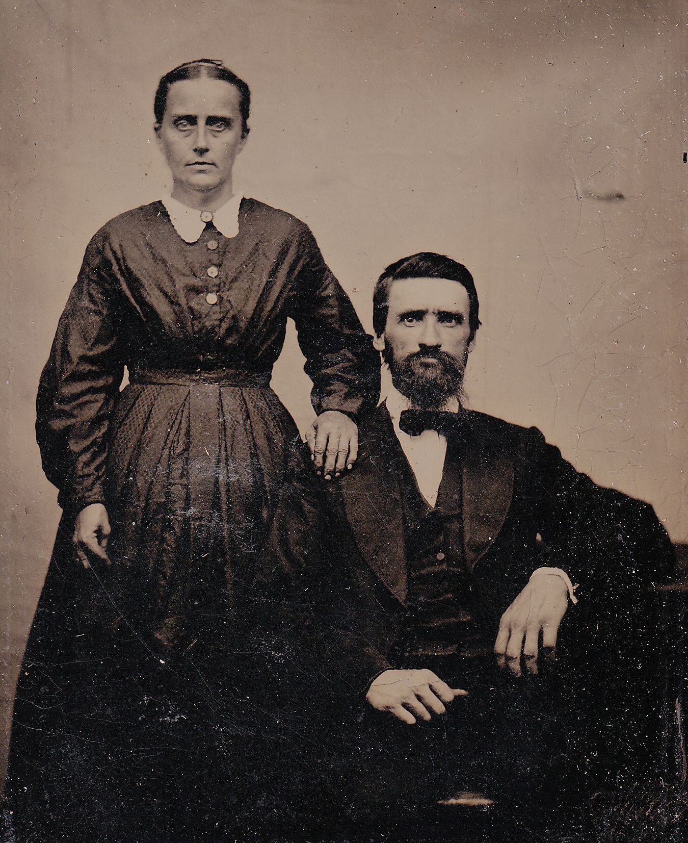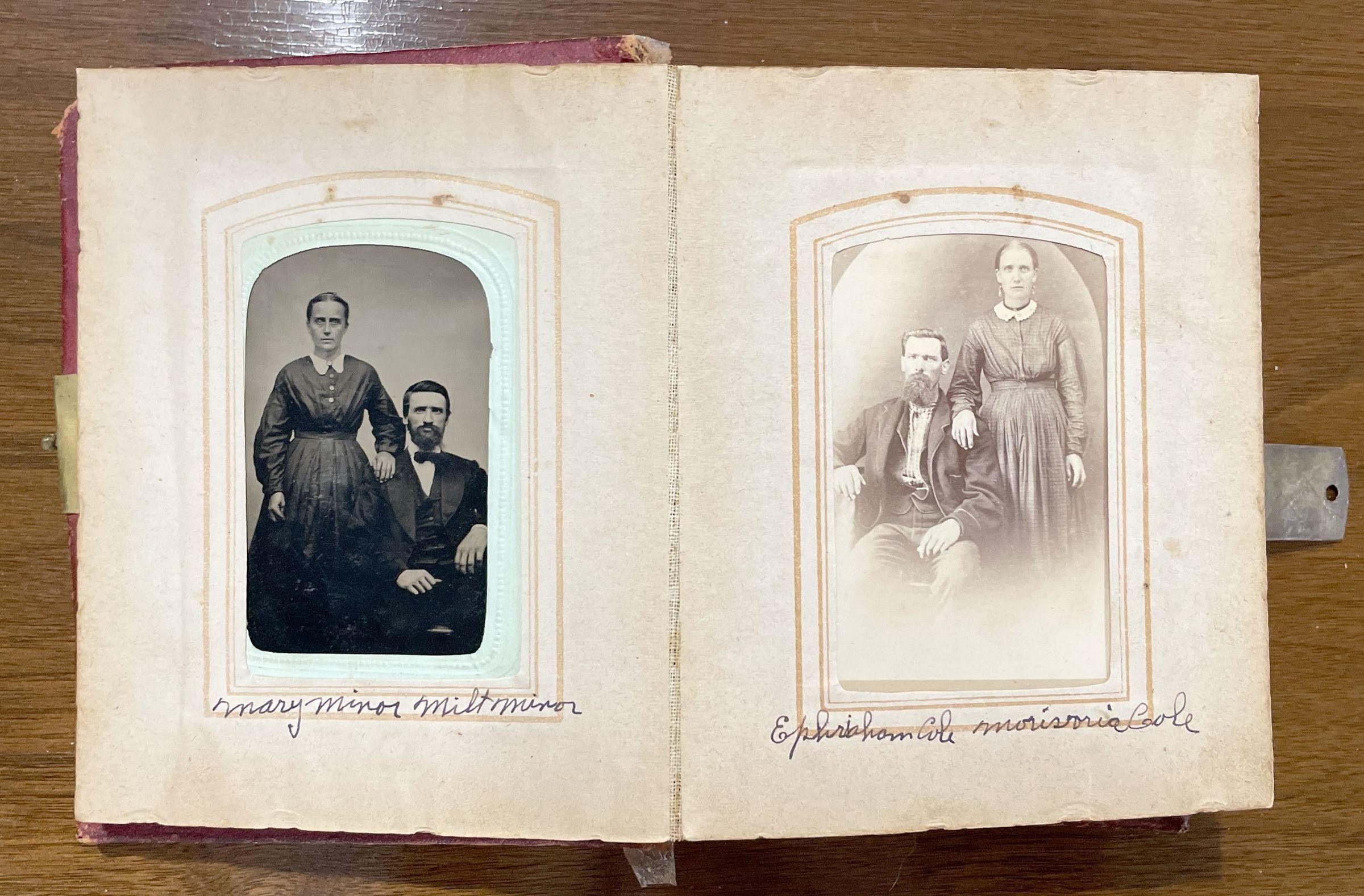 SOURCE CITATION: Geho Album 01, Photo 10 - Milton Minor [born circa 1836 - died between 1870 and 1880] with either his first wife, Mary Jane (Rose) Minor [1838-1871], or his second wife, Mary (Geho) Minor [1832-1913]; circa 1865-1875; item no. CMBL-AN004-0001-0010, George Lindsey Cole Series, Matt W. Cumberledge Collection; Greene Connections Archives Project (GreeneConnections.com).
