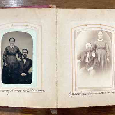 Geho Album 01 originally belonged to Zibiah (Garrison) Geho [1807-1898] - wife of Adam Geho, daughter of Benjamin Garrison. The album includes pictures of Zibiah's children and grandchildren, as well as the family of her sister, Sophia (Garrison) Campbell. Nearly all images are identified and have been maintained in original order. Most album captions were provided by George Lindsey Cole [1897-1987], grandson of George Cole [1844-1908] and Elizabeth (Geho) Cole [1848-1920], great-grandson of Adam Geho [1804-1871] and Zibiah (Garrison) Geho [1807-1898]. George Lindsey Cole [1897-1987] passed the album to his friend Kay Hibbs, who gave it to local historian Matt W. Cumberledge. Matt owned and shared the album with the Greene Connections: Greene County, Pennsylvania Archives Project in 2025.