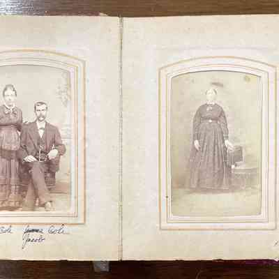 Geho Album 01 originally belonged to Zibiah (Garrison) Geho [1807-1898] - wife of Adam Geho, daughter of Benjamin Garrison. The album includes pictures of Zibiah's children and grandchildren, as well as the family of her sister, Sophia (Garrison) Campbell. Nearly all images are identified and have been maintained in original order. Most album captions were provided by George Lindsey Cole [1897-1987], grandson of George Cole [1844-1908] and Elizabeth (Geho) Cole [1848-1920], great-grandson of Adam Geho [1804-1871] and Zibiah (Garrison) Geho [1807-1898]. George Lindsey Cole [1897-1987] passed the album to his friend Kay Hibbs, who gave it to local historian Matt W. Cumberledge. Matt owned and shared the album with the Greene Connections: Greene County, Pennsylvania Archives Project in 2025.