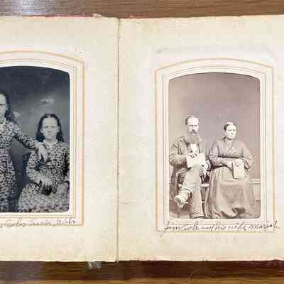 Geho Album 01 originally belonged to Zibiah (Garrison) Geho [1807-1898] - wife of Adam Geho, daughter of Benjamin Garrison. The album includes pictures of Zibiah's children and grandchildren, as well as the family of her sister, Sophia (Garrison) Campbell. Nearly all images are identified and have been maintained in original order. Most album captions were provided by George Lindsey Cole [1897-1987], grandson of George Cole [1844-1908] and Elizabeth (Geho) Cole [1848-1920], great-grandson of Adam Geho [1804-1871] and Zibiah (Garrison) Geho [1807-1898]. George Lindsey Cole [1897-1987] passed the album to his friend Kay Hibbs, who gave it to local historian Matt W. Cumberledge. Matt owned and shared the album with the Greene Connections: Greene County, Pennsylvania Archives Project in 2025.