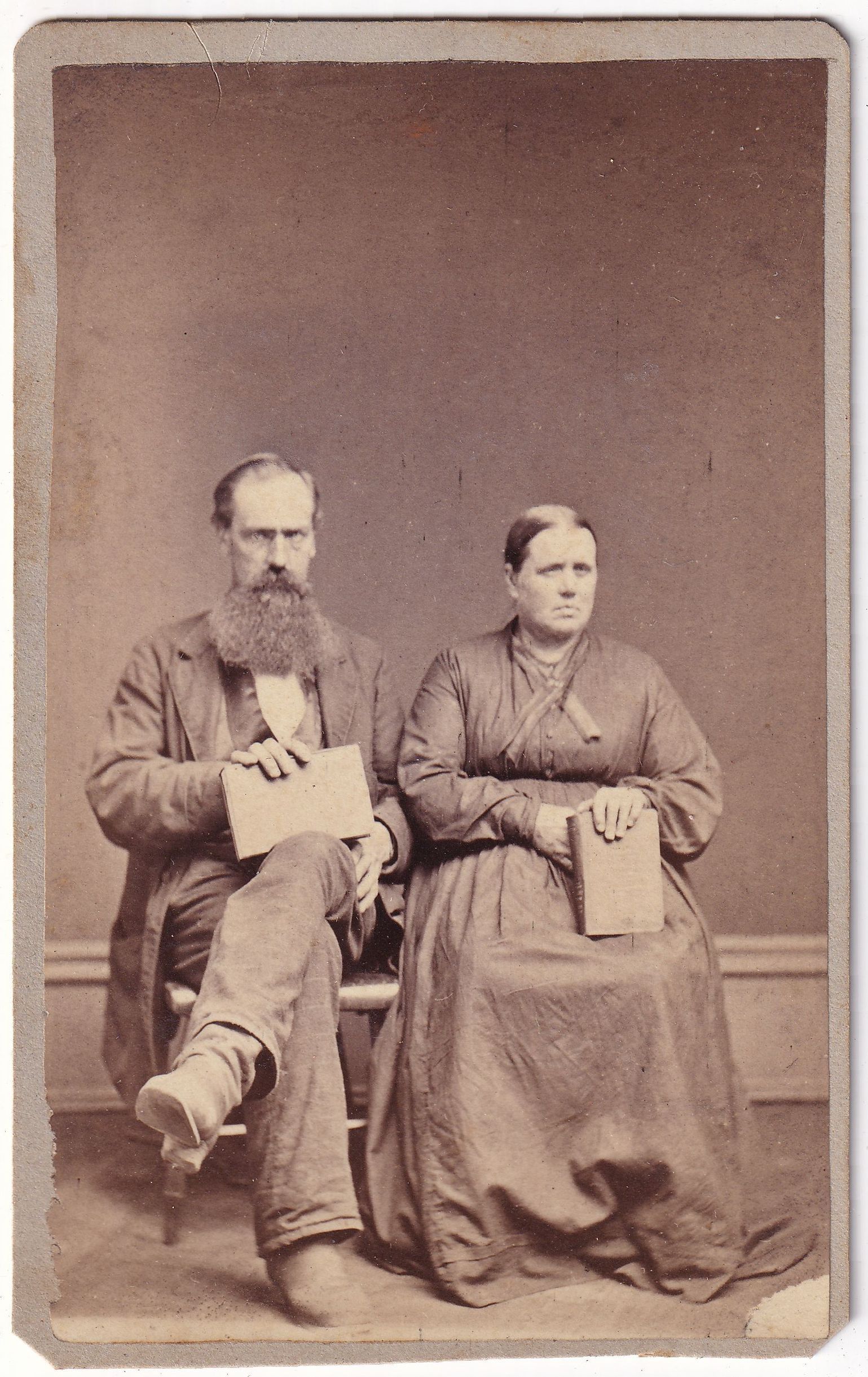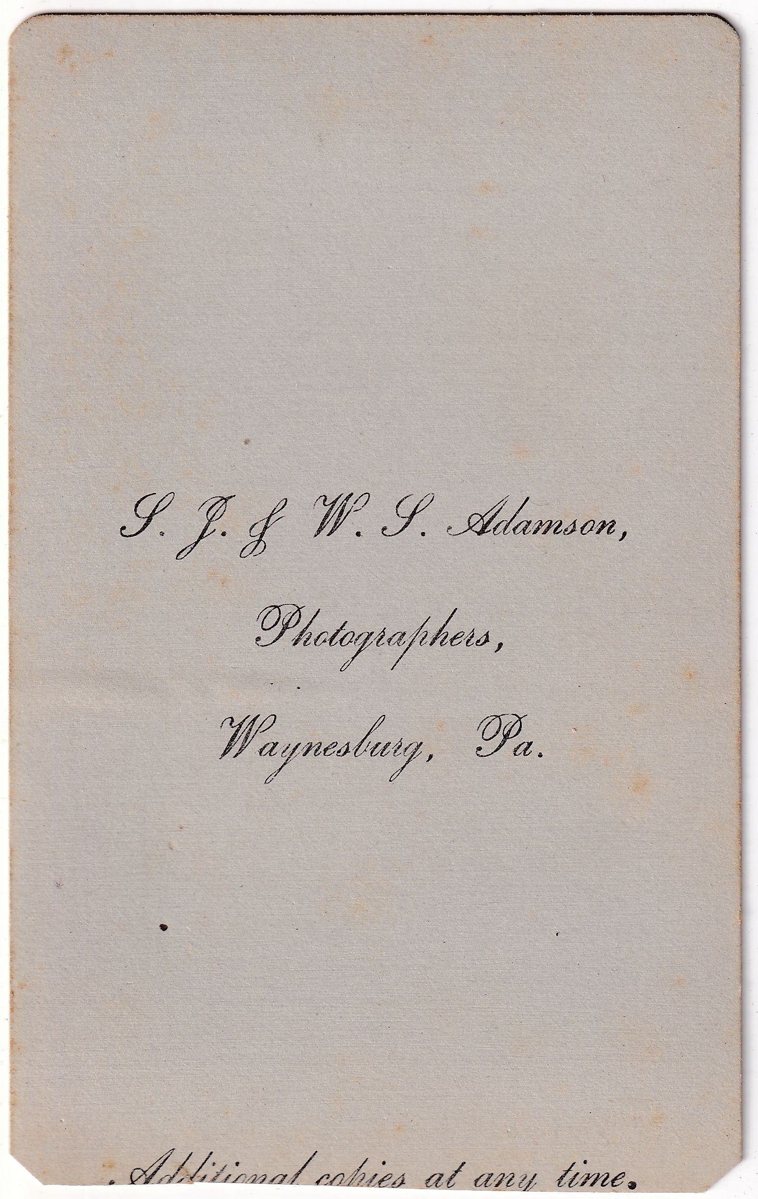 SOURCE CITATION: Geho Album 01, Photo 29 - James L. Cole [1840-1922] and his wife, Mariah Abigail (Geho) Cole [1830-1904]; circa 1865-1875, image by S. J. & W. S. Adamson, Photographers, Waynesburg, Pa.; item no. CMBL-AN004-0001-0029, George Lindsey Cole Series, Matt W. Cumberledge Collection; Greene Connections Archives Project (GreeneConnections.com).