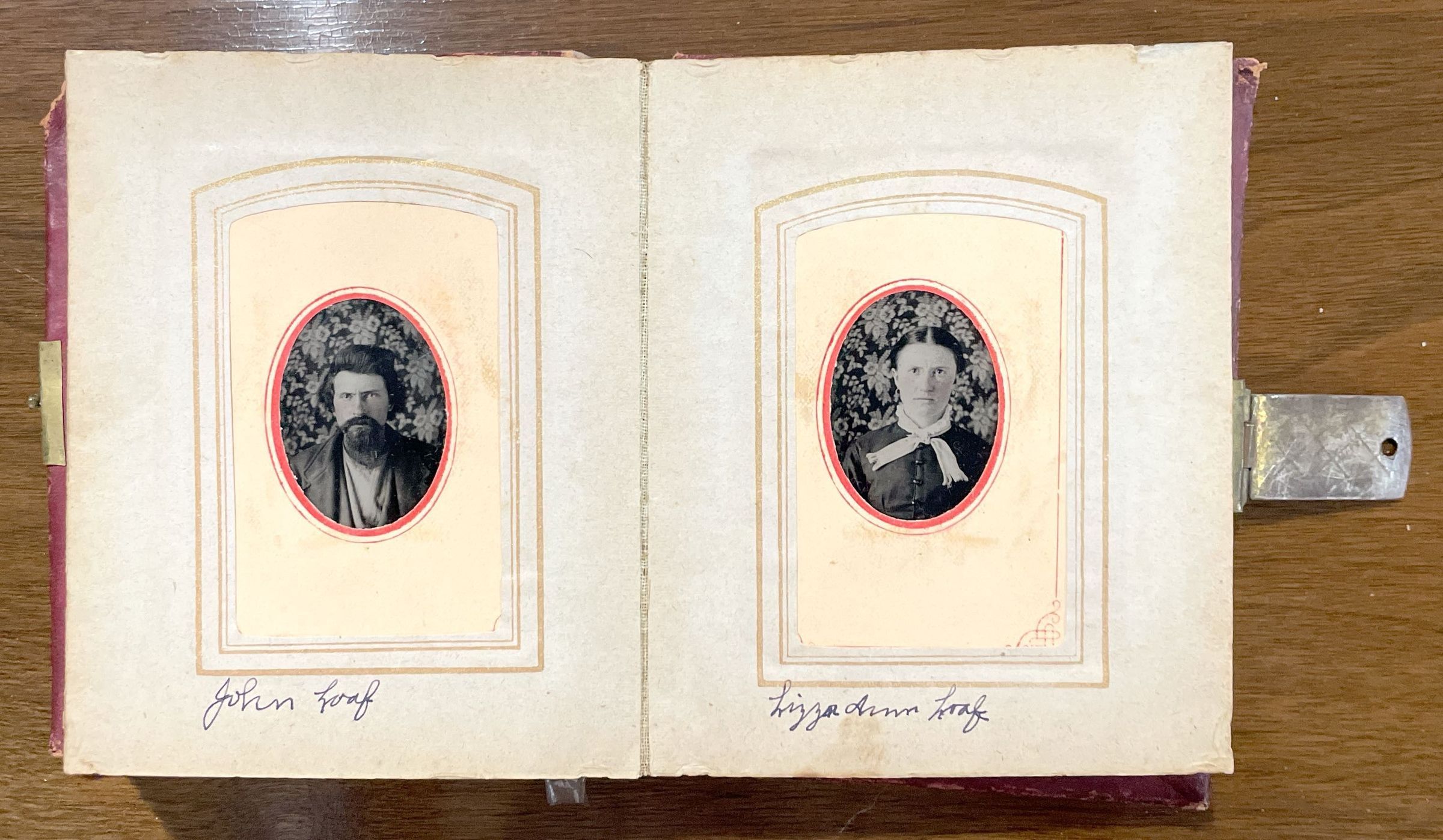 Geho Album 01 originally belonged to Zibiah (Garrison) Geho [1807-1898] - wife of Adam Geho, daughter of Benjamin Garrison. The album includes pictures of Zibiah's children and grandchildren, as well as the family of her sister, Sophia (Garrison) Campbell. Nearly all images are identified and have been maintained in original order. Most album captions were provided by George Lindsey Cole [1897-1987], grandson of George Cole [1844-1908] and Elizabeth (Geho) Cole [1848-1920], great-grandson of Adam Geho [1804-1871] and Zibiah (Garrison) Geho [1807-1898]. George Lindsey Cole [1897-1987] passed the album to his friend Kay Hibbs, who gave it to local historian Matt W. Cumberledge. Matt owned and shared the album with the Greene Connections: Greene County, Pennsylvania Archives Project in 2025.
