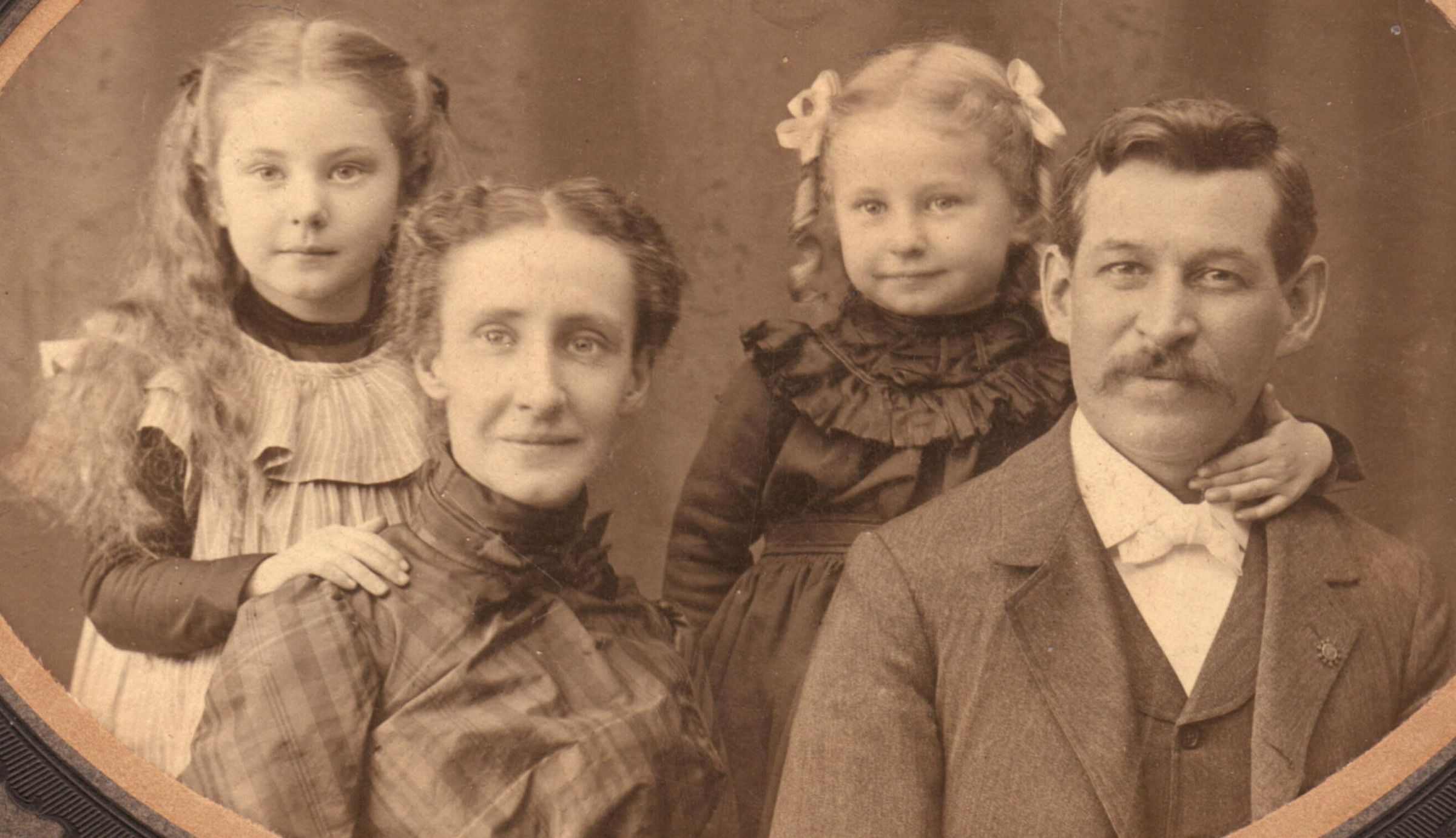 George Harvey Elms and Evaline Florence (Morris) Elms family, pictured [Left-Right]: