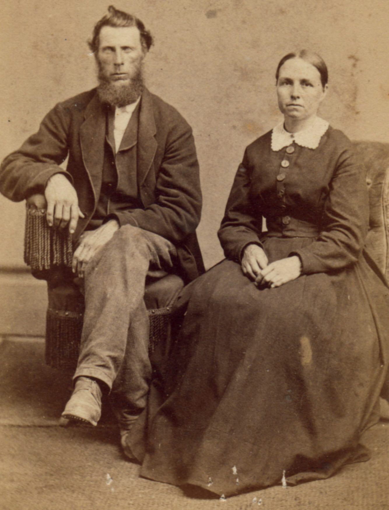 Source Citation: George Hoge [1832-1884] and his wife, Abigail (Woods) Hoge [1835-1932], item no. BAKM_AN003_0001, Margaret Leah (Waddell) Baker Collection, Greene Connections Archives Project (www.GreeneConnections.com).