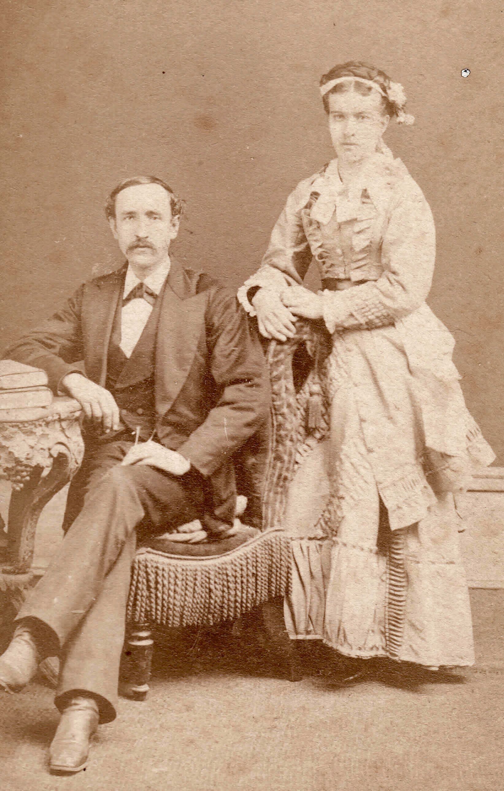 Source Citation: George Moore and his wife, Sarah (Scott) Moore; circa 1870-1885, image by Rogers Brothers, Photographers, Opposite Public Square, Waynesburg, Pa.; item no. THRM_AN001_0012, Mary “Mamie” (Throckmorton) Bonham Collection, shared by Maggie Belle (Hartzell) (Rush) Conklin; Greene Connections Archives Project (GreeneConnections.com).