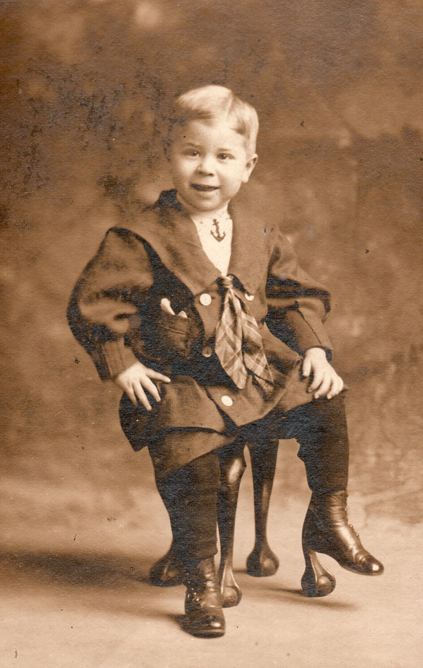 SOURCE CITATION: George Walter Kiehl, age "3 years less 12 days" [born 2 April 1905]; dated 1908, image by Kaufmann's, Pittsburg, Pa.; item no. CGSP_AN006_0004_0014, Esther Ruth Hart Series, Cornerstone Genealogical Society Collection; Greene Connections Archives Project (GreeneConnections.com).