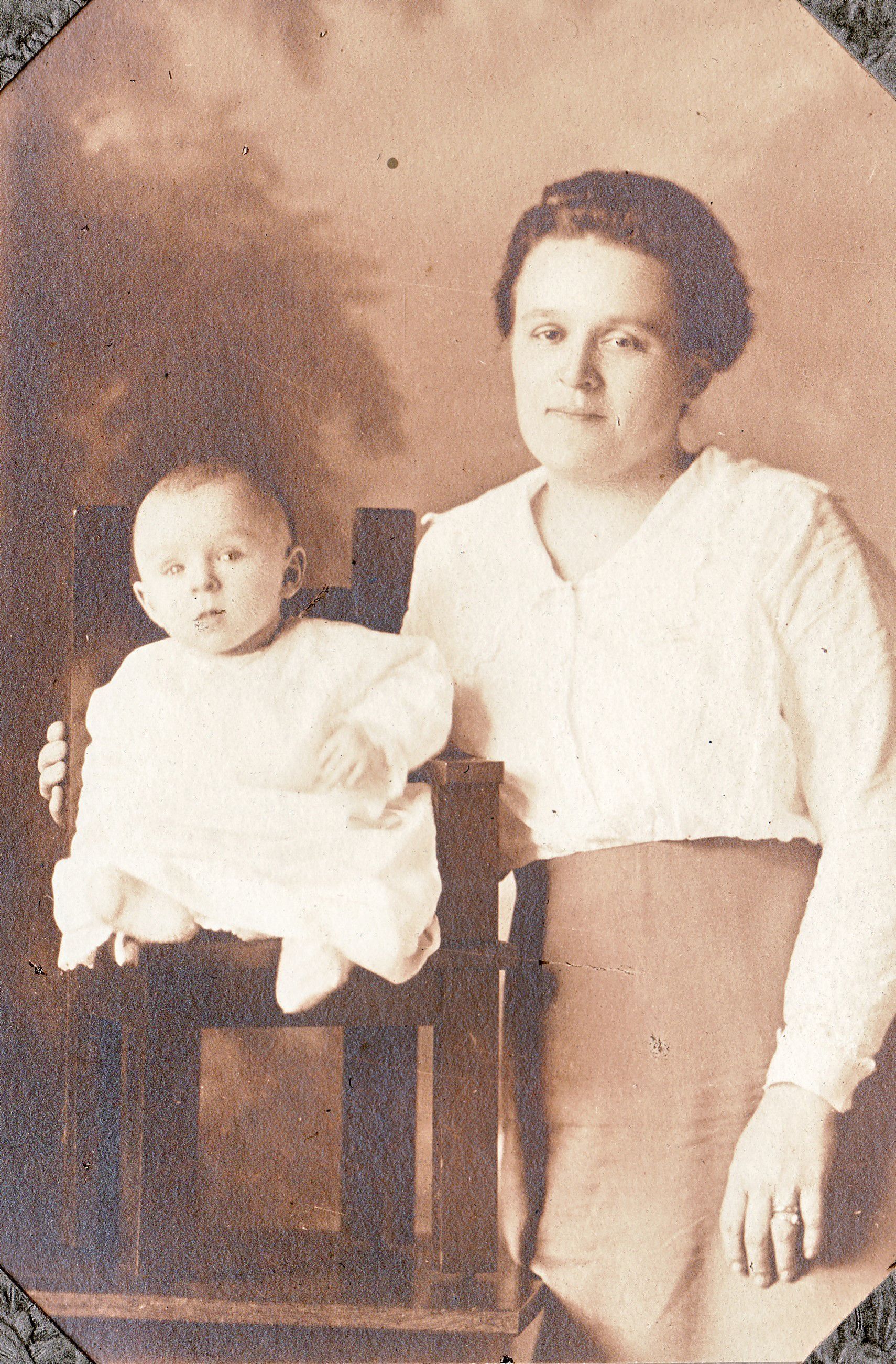 SOURCE CITATION: Goldie Agnes (Carpenter) Orndoff [1887-1945] and her son, William Clarence Orndoff [1914-1996]; circa 1915, image by Clarence F. Long, Community Art Shop, Waynesburg, Pa.; item no. CARP-AN005-0066, Sellers Burdette and Bettie (Blake) Carpenter Collection, shared by their heirs; Greene Connections Archives Project (GreeneConnections.com).