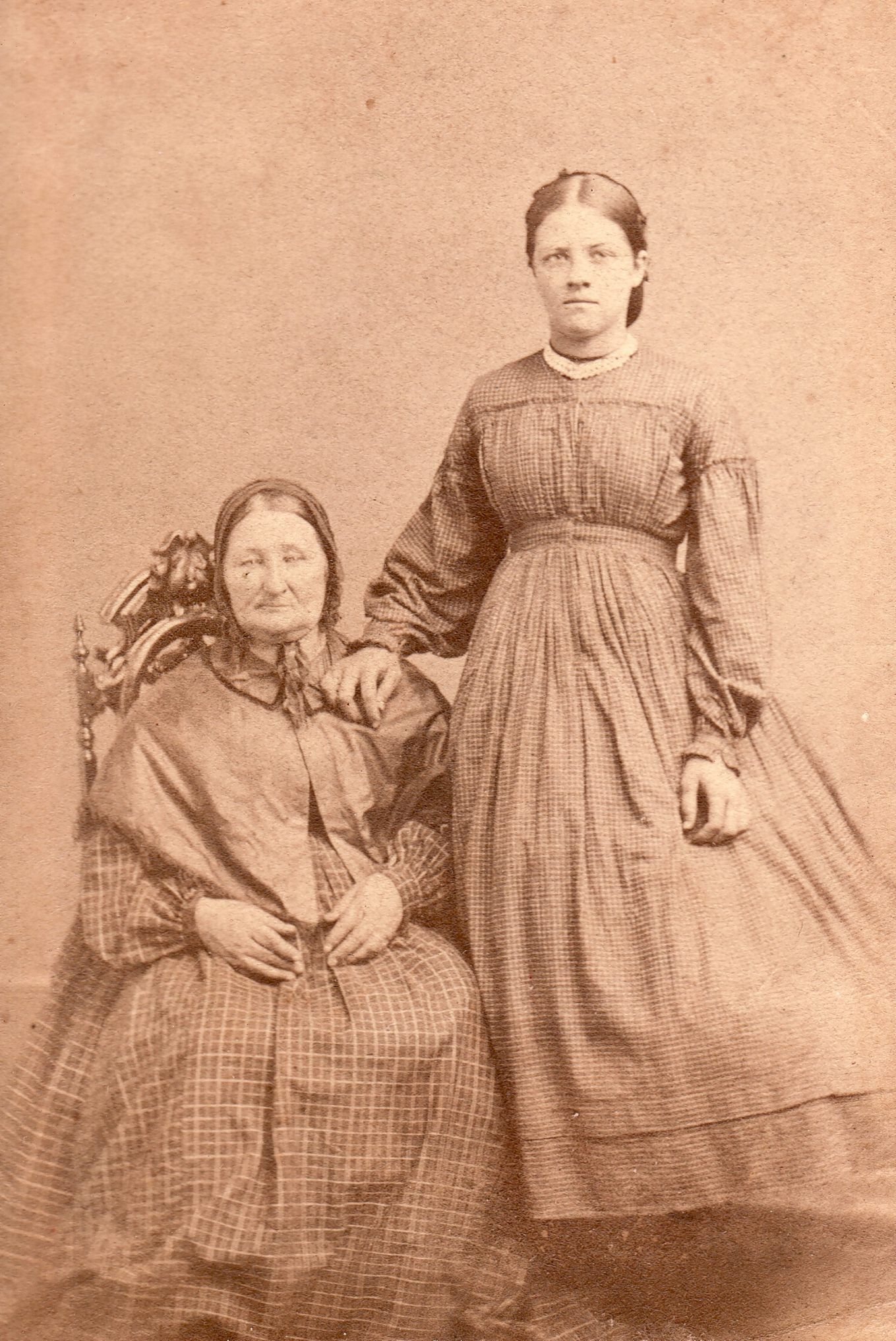 Carte-de-Visite photograph of Abigail (McGinnis) (Grable) Moore [1809-1880] and her youngest daughter, Abigail (Grable) Hedge [1850-1940].