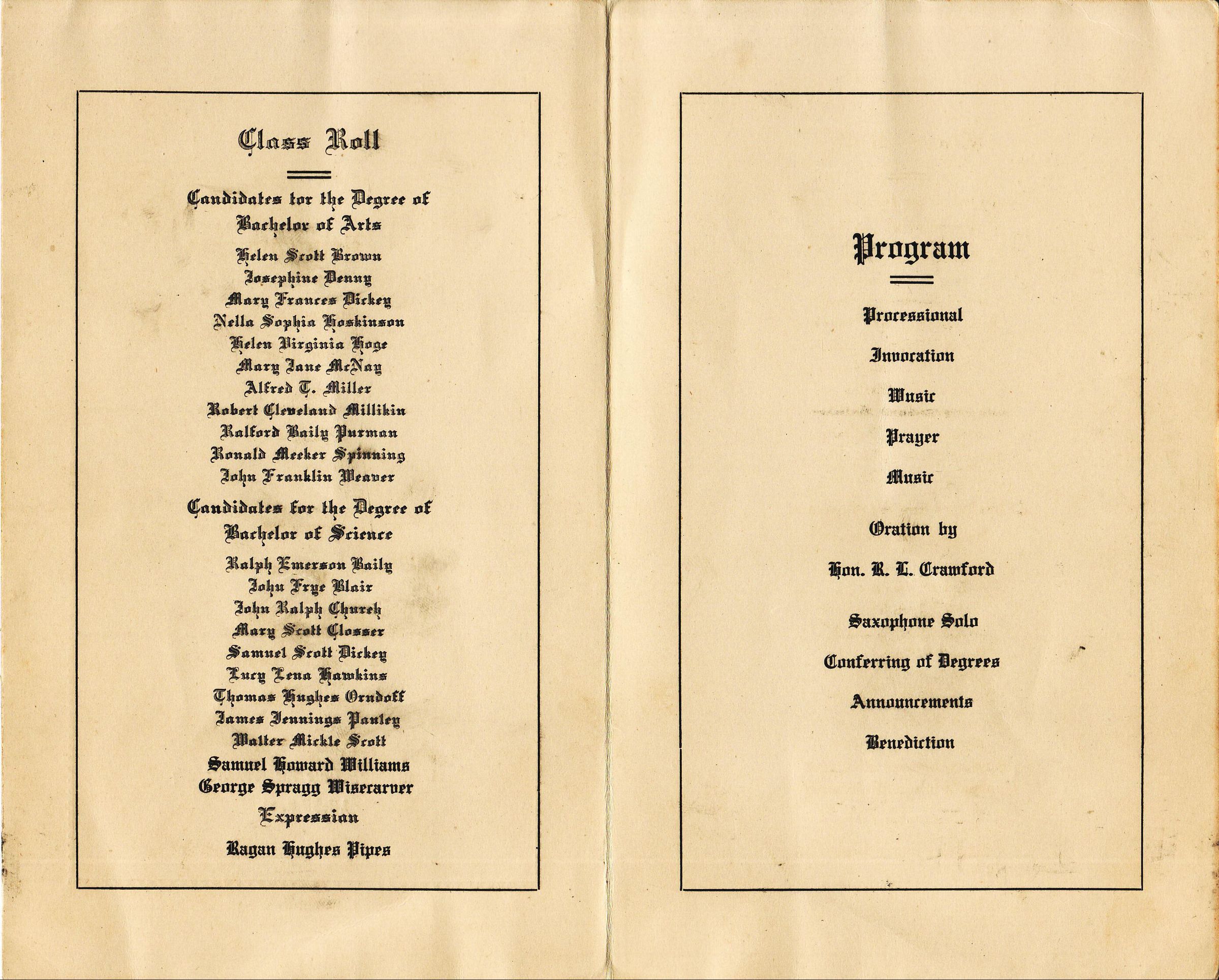 Graduation Program, Waynesburg College, Class of 1915