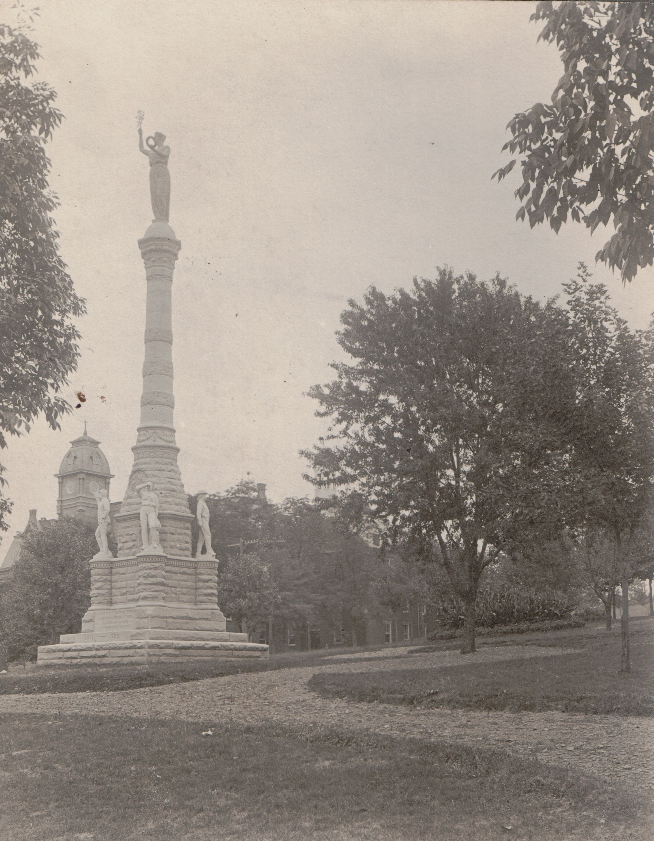 SOURCE CITATION: Greene County Album, Photo 05 - Soldiers & Sailors Monument in Monument Park, Waynesburg, Greene County, Pennsylvania; circa 1905; item no. GCHS-AN031-0002-0005, George David Jenkins Series, Greene County Historical Society Collection; Greene Connections Archives Project (GreeneConnections.com).