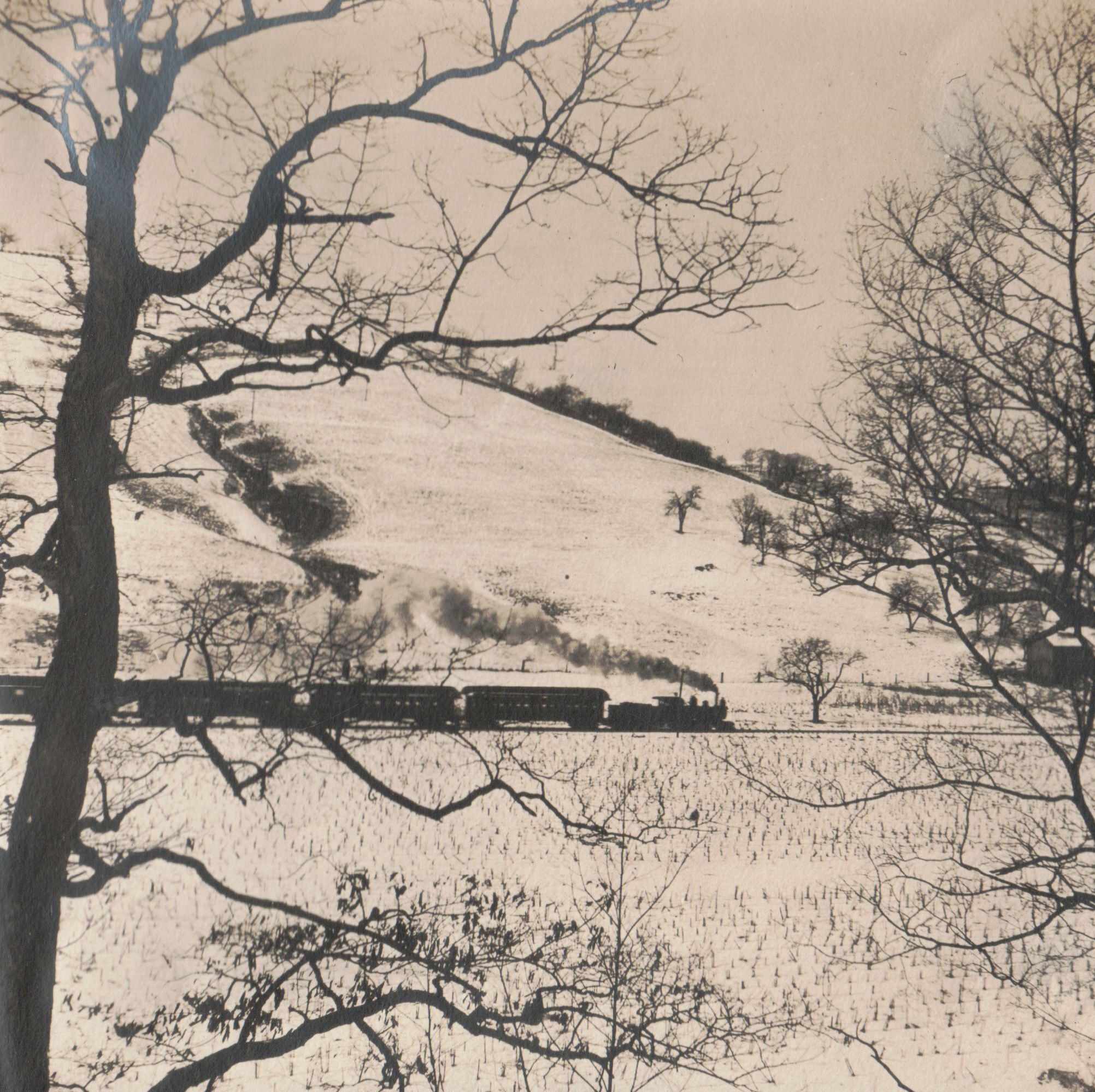 SOURCE CITATION: Greene County Album, Photo 12 - Waynesburg & Washington Railroad going through Greene County, Pennsylvania; circa 1907; item no. GCHS-AN031-0002-0012, George David Jenkins Series, Greene County Historical Society Collection; Greene Connections Archives Project (GreeneConnections.com).