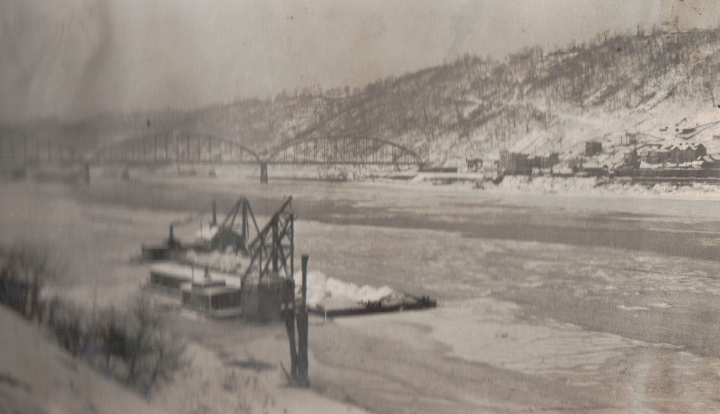 SOURCE CITATION: Greene County Album, Photo 40 - Monongahela River at Monongahela, Washington County, Pennsylvania; 1912; item no. GCHS-AN031-0002-0040, George David Jenkins Series, Greene County Historical Society Collection; Greene Connections Archives Project (GreeneConnections.com).