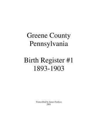 Contains a complete transcription of the records found in the first of two Birth Registers found in the Greene County Courthouse in Waynesburg, Pennsylvania. This book contains births recorded between 1893 and 1903. Includes a complete name index.Collection