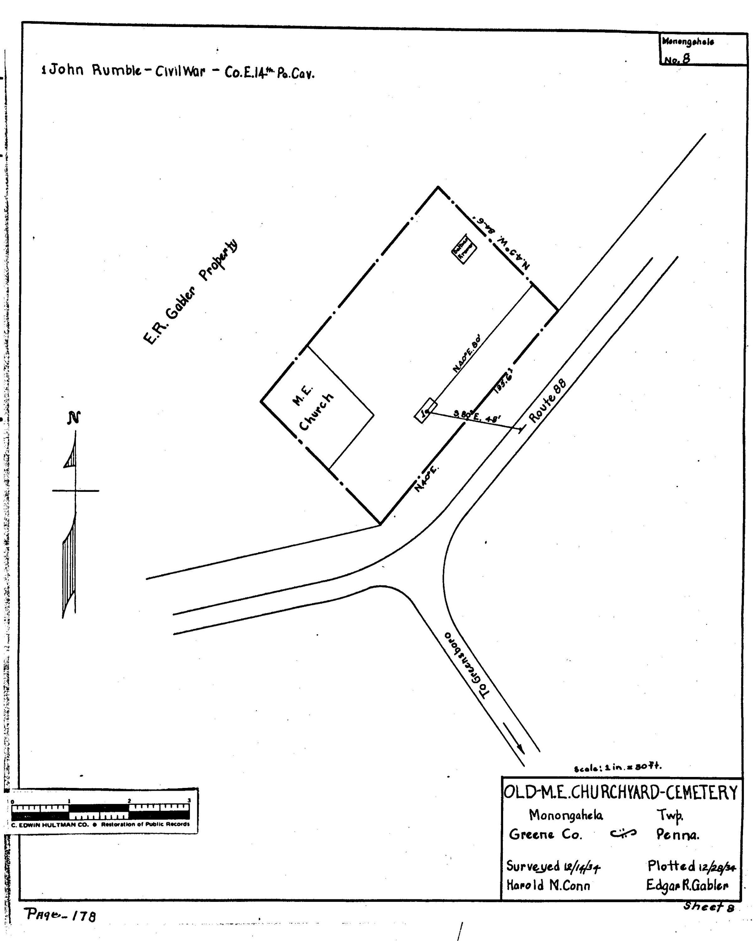 SOURCE CITATION: WPA Cemetery Plat - Pennsylvania - Greene County - Monongahela Township - Greensboro Methodist Episcopal Church Cemetery (1934); item no. 2016.3.366, Cemetery Plat (WPA) Collection, surveyed by Works Projects Administration, copy on file at the Clerk of Courts Office, Greene County Courthouse; Greene Connections Archives Project (GreeneConnections.com).