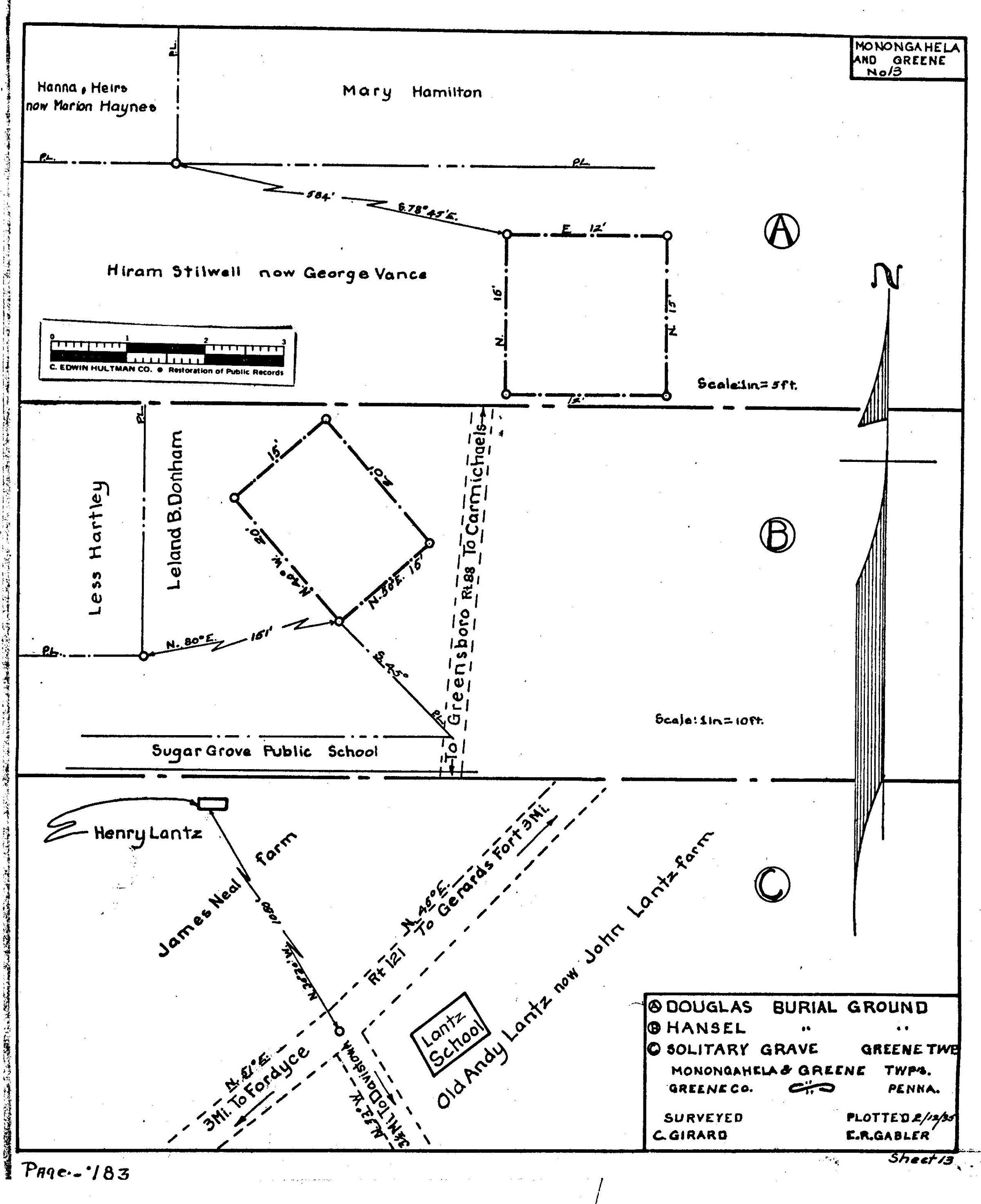 During the 1930s, the Works Progress Administration (renamed in 1939 as the Work Projects Administration) provided jobs by employing individuals to locate and map area cemeteries. As a part of these surveys, workers also listed veterans buried at each cemetery. The Clerk of Courts Office at the Greene County Courthouse in Waynesburg, Pennsylvania, holds one set of the plat maps copied from the originals created during this project. In 2019, these maps were subsequently scanned and researched for the Greene Connections: Greene County, Pennsylvania Archives Project.