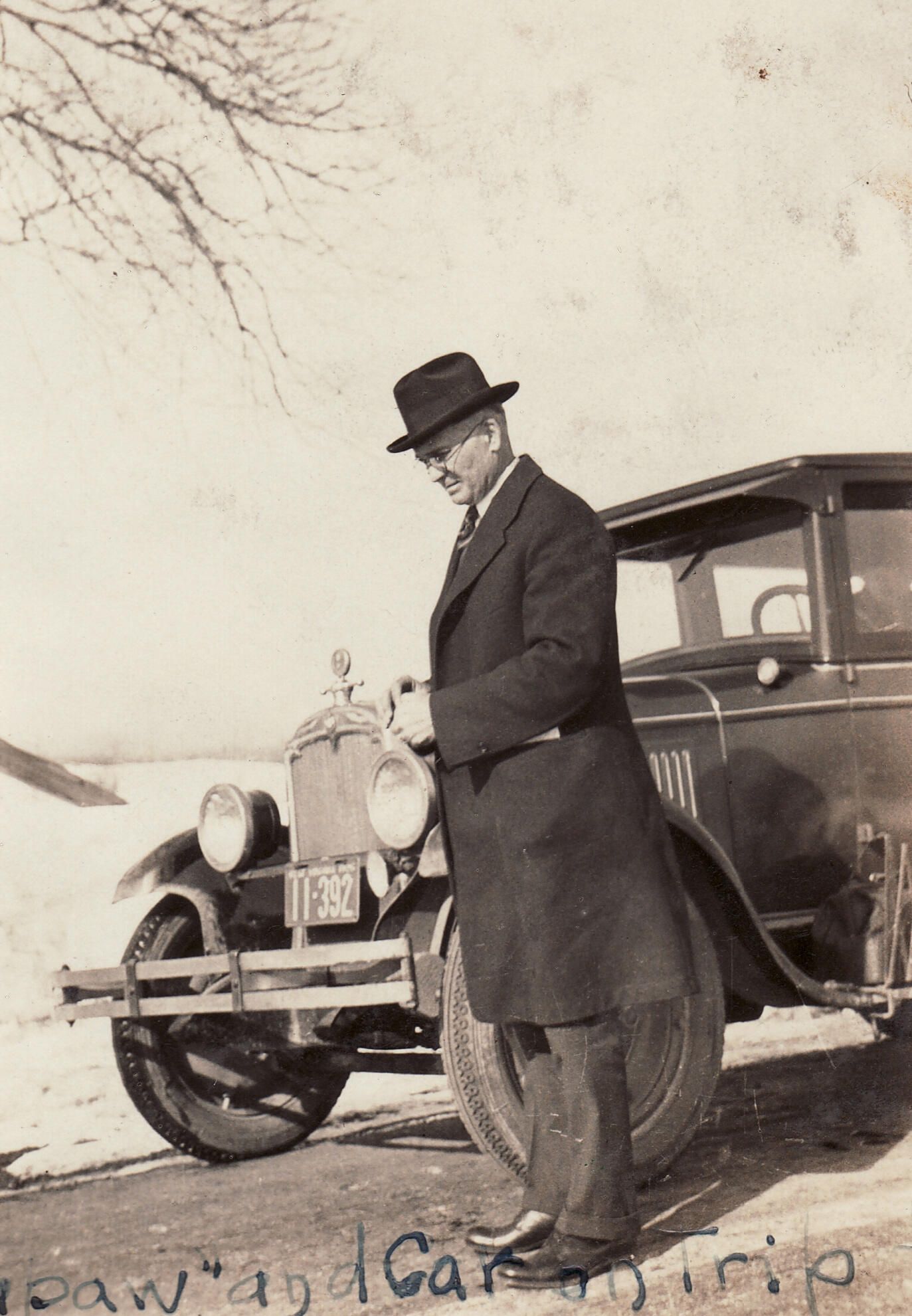 SOURCE CITATION: Harry Sterling Toothman [1872-1951] on a car trip; circa 1926; item no. TOOK_AN003_0001_0082, Toothman-Hoult Series, Katherine Jane (Throckmorton) Toothman Collection, Greene Connections: Greene County, Pennsylvania Archives Project (www.GreeneConnections.com).