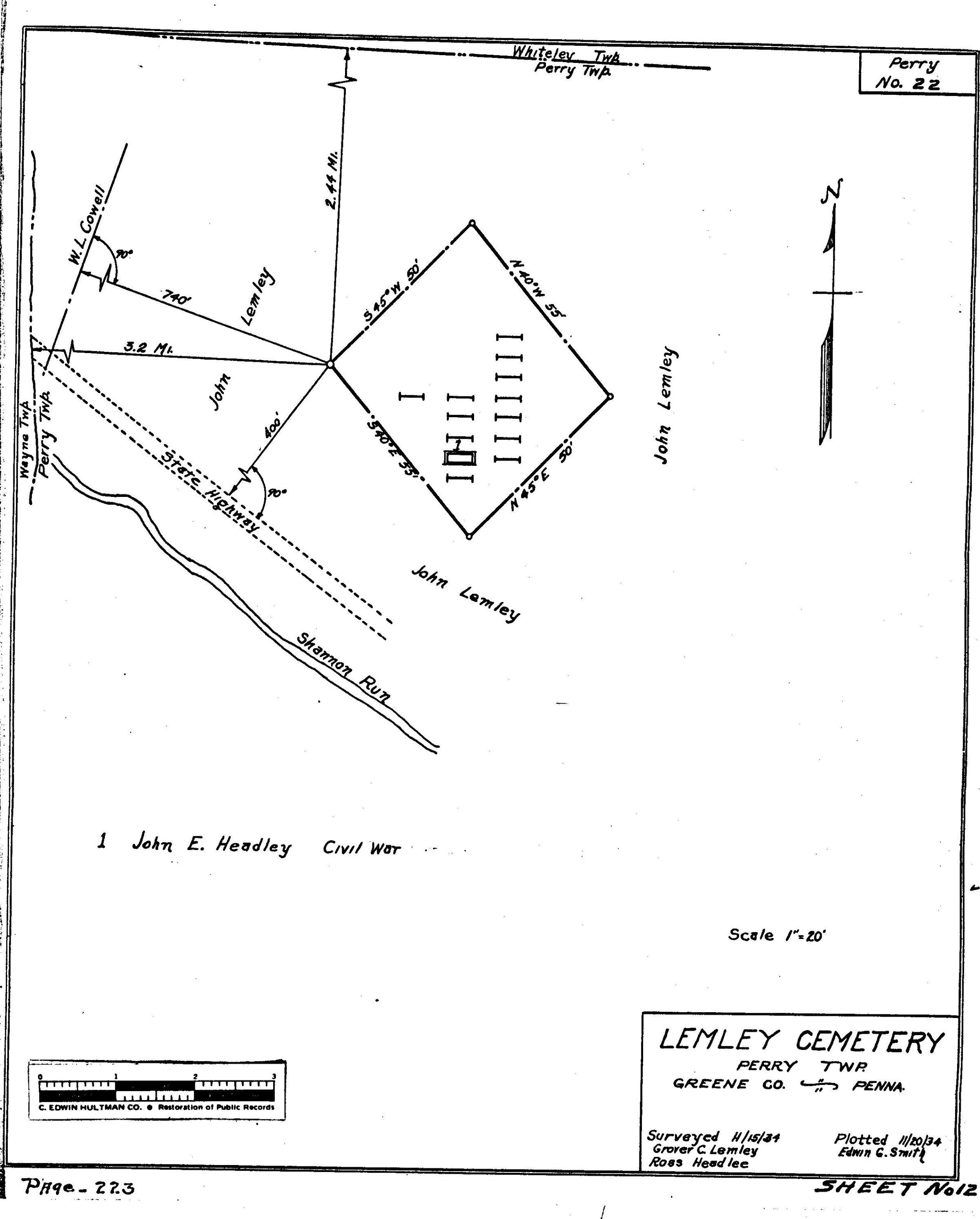 Headlee II (John Lemley Farm) - Perry Township - Greene County - Pennsylvania - WPA Cemetery PlatEntry/Object ID