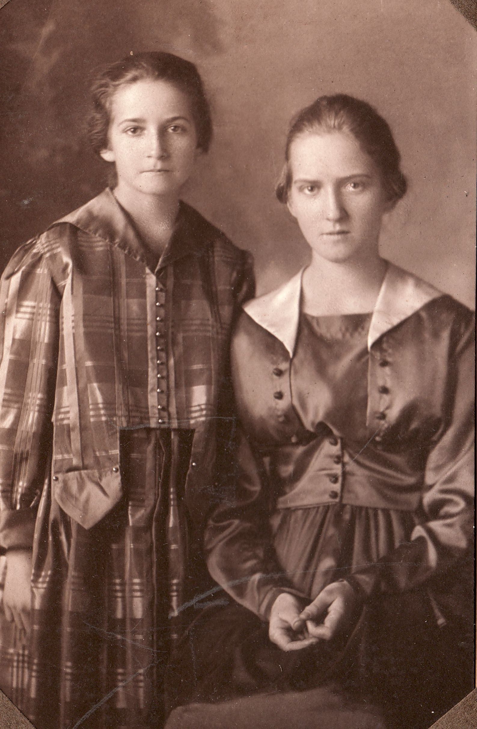 SOURCE CITATION: [Left-Right]: Helen (Morris) Gordon [1906-1997] and Mary Margaret (Morris) Scott [1901-1982]; circa 1920-1930, image by Clarence F. Long, Community Art Shop, Waynesburg, Pa.; item no. GCHS-AN032-0002-0009, Greene County Historical Society Collection; Greene Connections Archives Project (GreeneConnections.com).