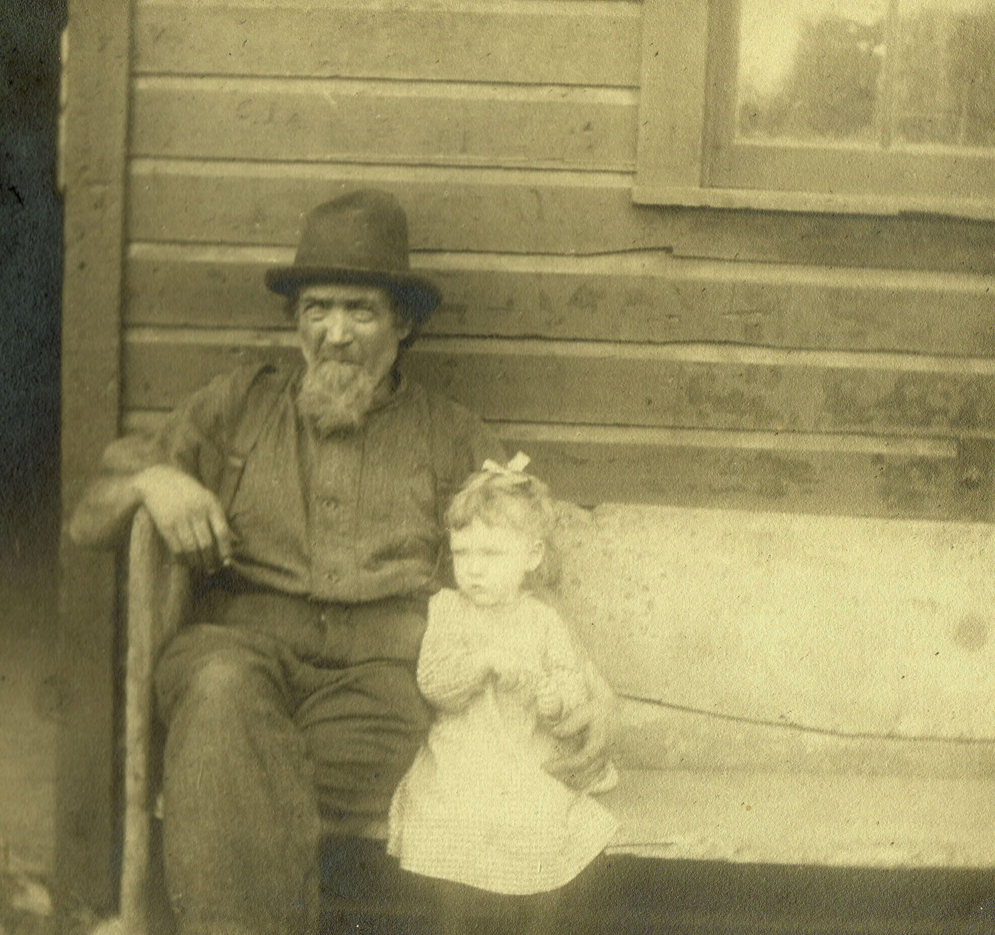 Source Citation: Henry Moore Jacobs [1832-1904] with his granddaughter Pearl Marie (Jacobs) Cole [1898-1953]; item no. JACB_AN001_0015, Helen Mae (Jacobs) Fonner Collection, shared by George and Anna (Fonner) Blystone; Greene Connections Archives Project (GreeneConnections.com).