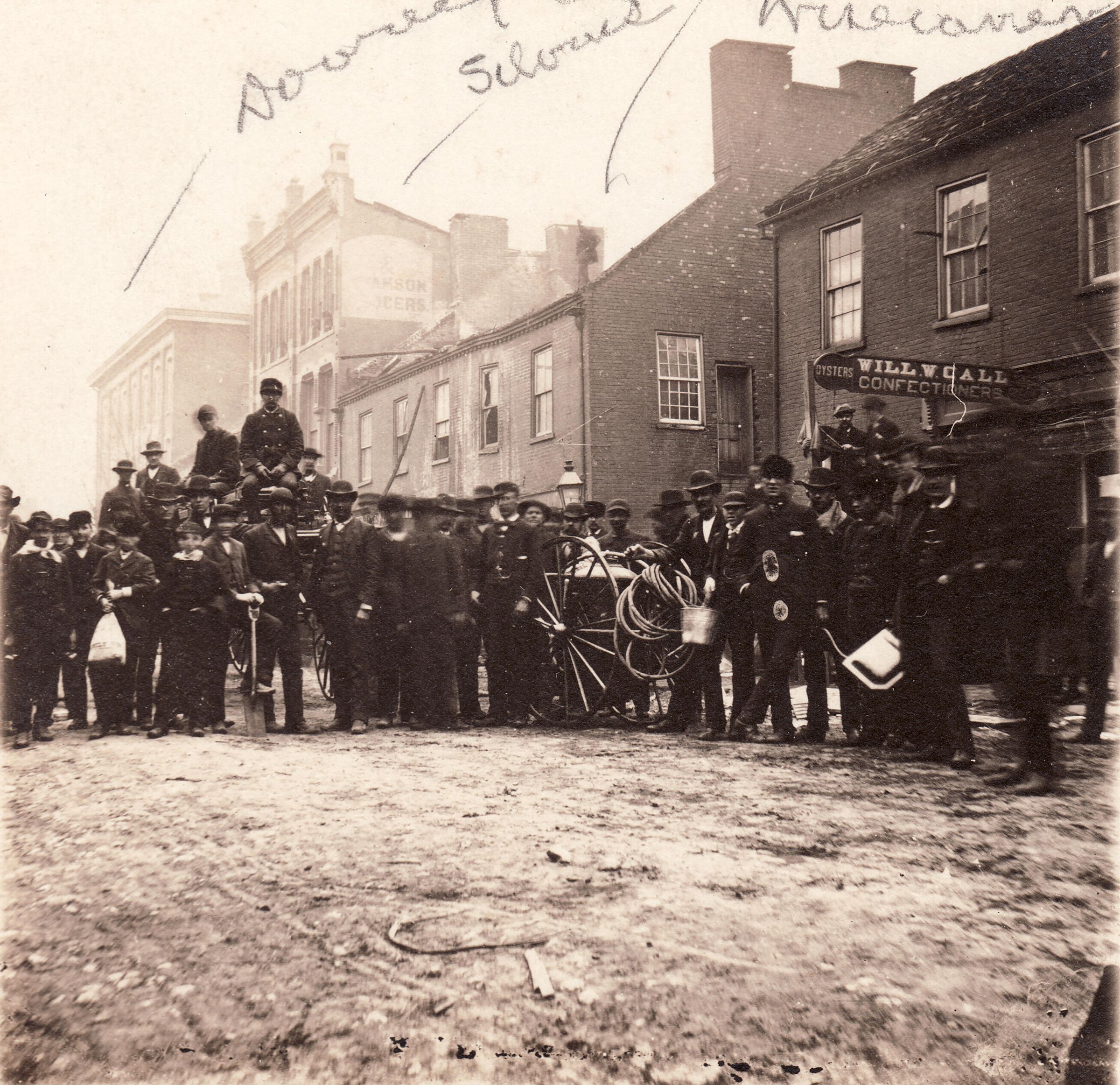 Fire--Buildings, Occupations--Firefighters, Waynesburg (Pa.)--Business--Downey House, Waynesburg (Pa.)--Streets--High StreetOther Names and Numbers