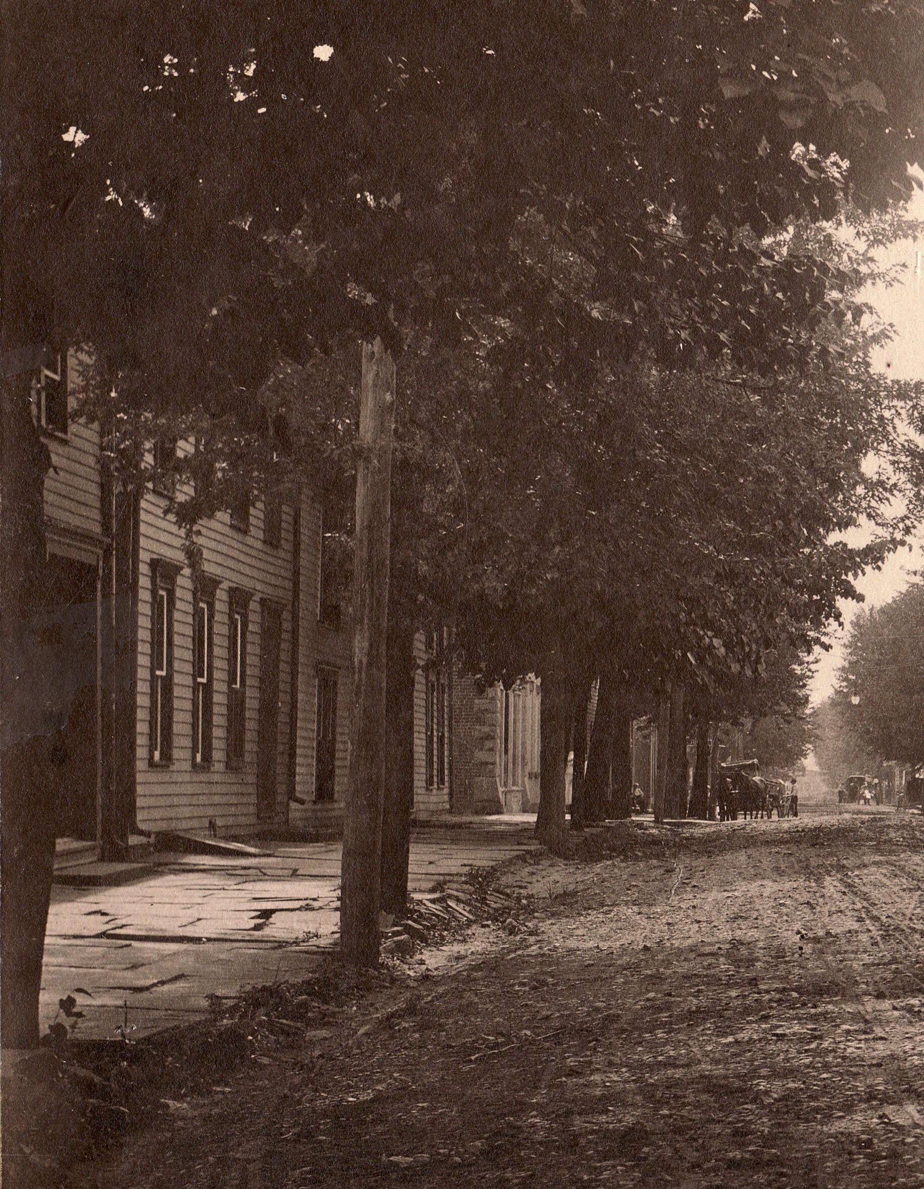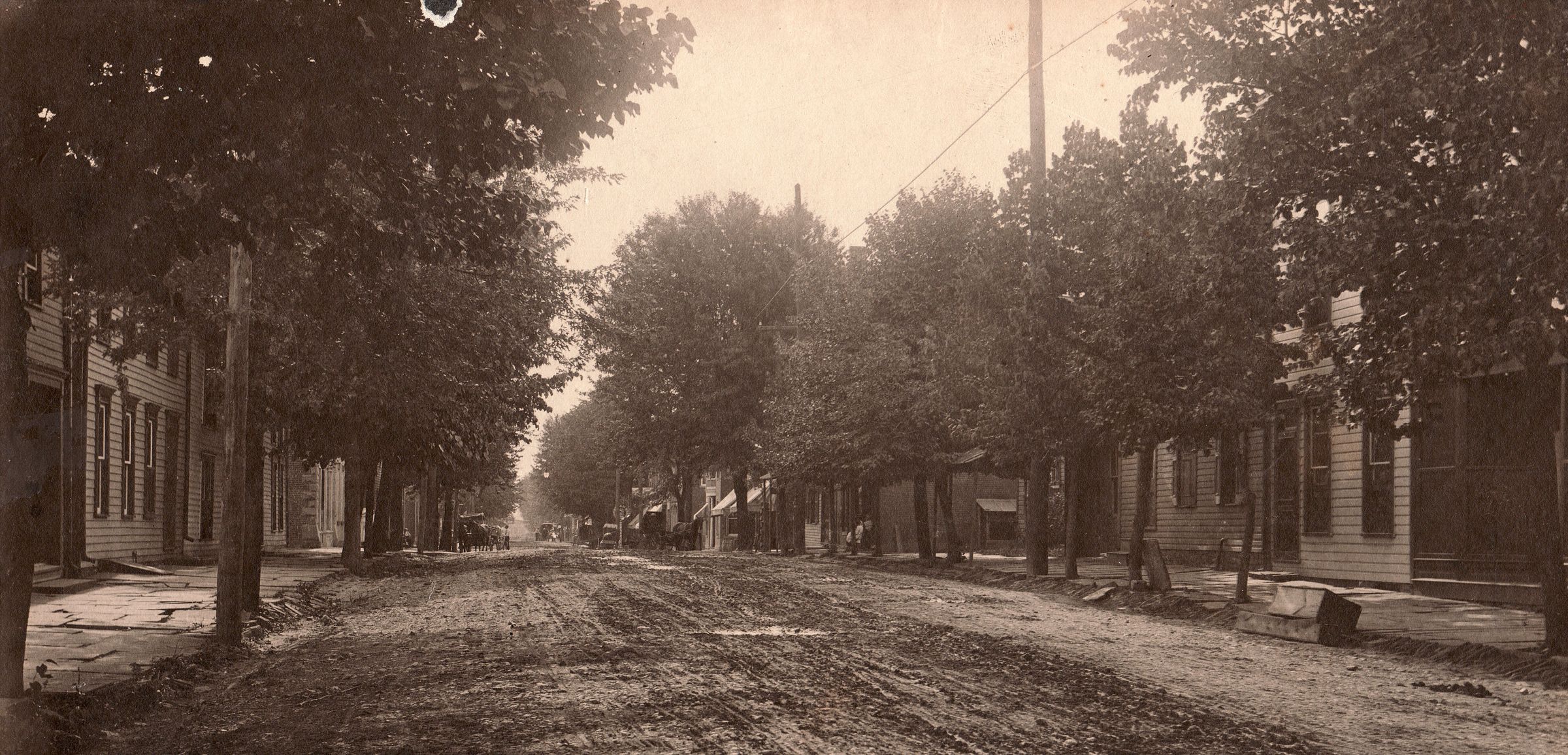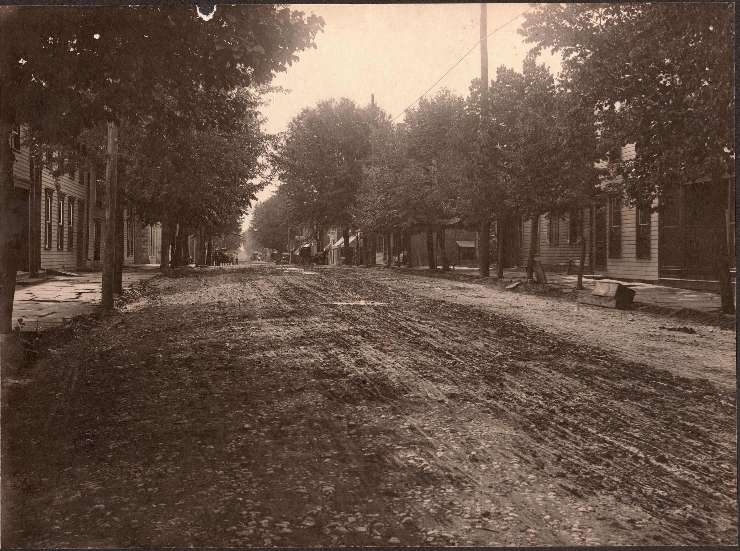Source Citation: High Street (looking west from Cumberland Street) in Waynesburg, Greene County, Pennsylvania, item no. WBGB-AN001-0007, Waynesburg Borough Office Collection, Greene Connections Archives Project (www.GreeneConnections.com).