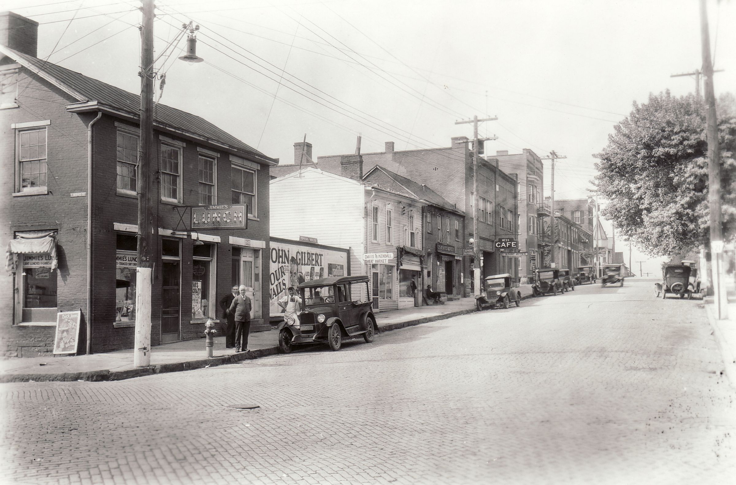 Jimmie's Lunch on the southwest corner of High and Morris Streets was a favorite hang out best known for hot dogs "run through the garden."