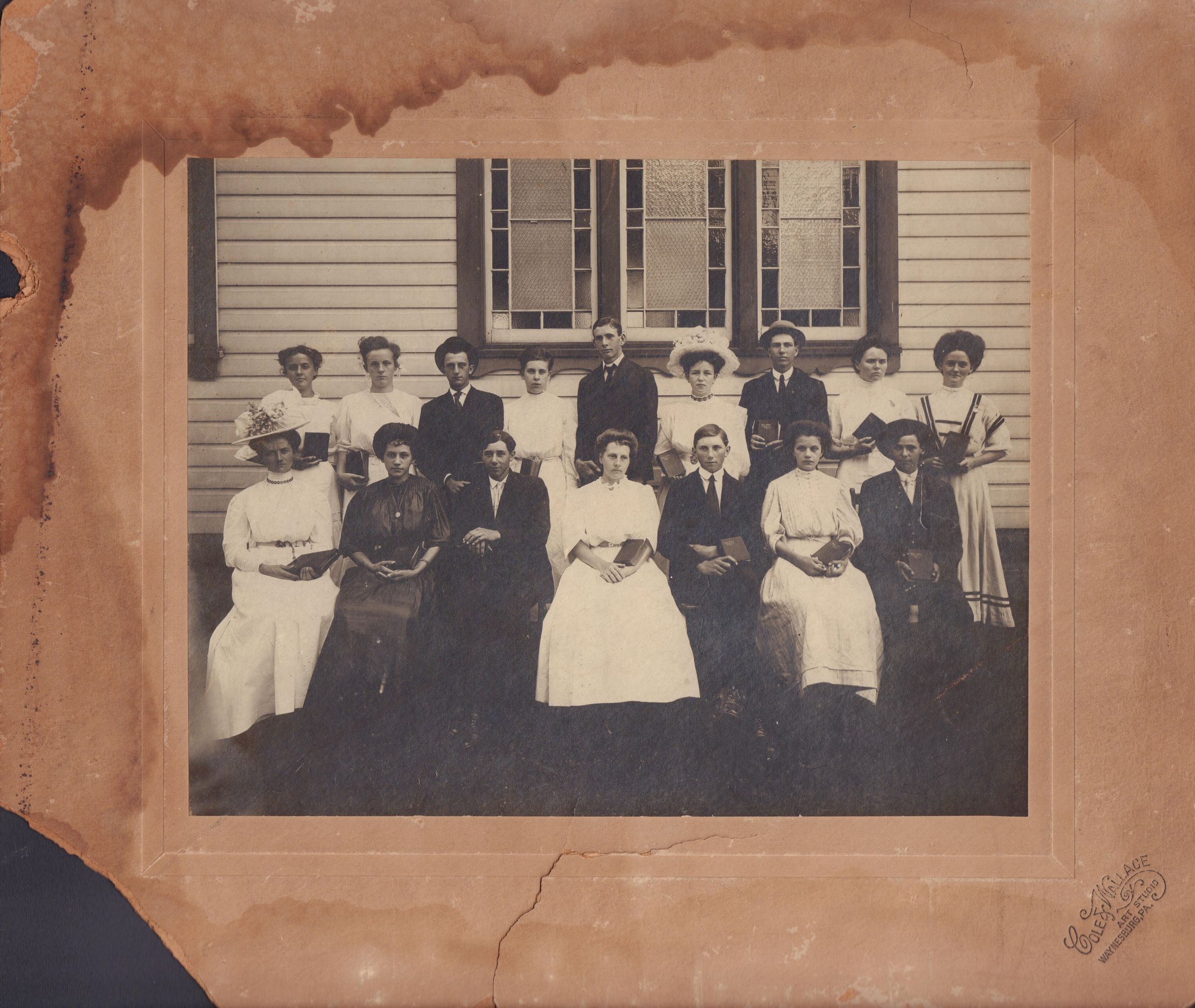 Source Citation: Holbrook Christian Church Sunday School in Holbrook, Center Township, Greene County, Pennsylvania; circa 1910-1915, image by Cole & Wallace, Art Studio, Waynesburg, Pa.; item no. TOOG-AN002-0041, Watson Series, Glenn Jacob Roy Thornton Toothman III Collection; Greene Connections Archives Project (GreeneConnections.com).
