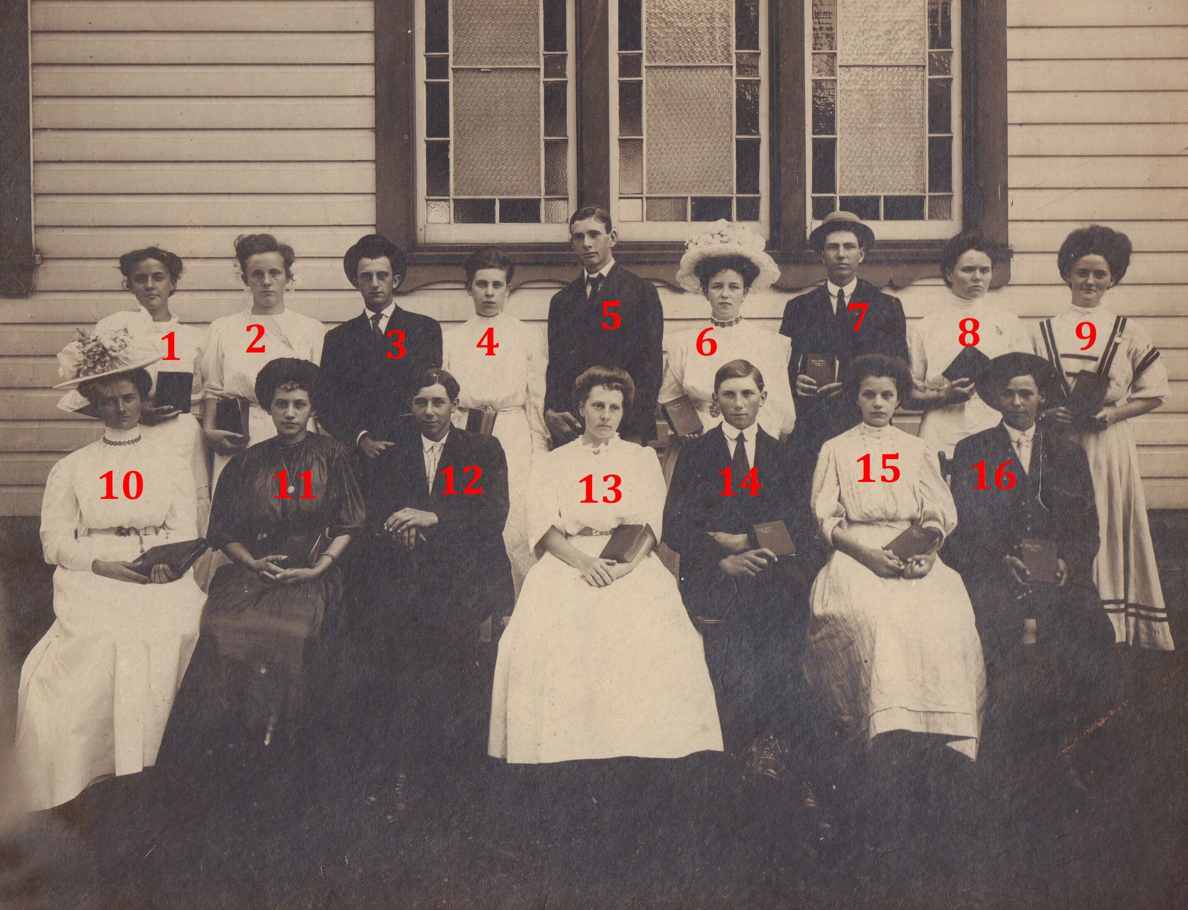 Watson, Ella May [1893-1988], Wood, Sarah [1895-1983], Wood, Clara [1893-1982], Knight, Roy Forest [1891-1964], Rush, Mary Grace [1890-1969], McCoy, William Richard [1891-1972], Grove, Artie Hildred [1892-1965], Hoge, Francis Luellen (a/k/a Lue) [1890-1935], Bayard, Lucretia (a/k/a Crete) [1891-1977], Wood, Martha Hazel "Mattie" [1897-1961], Morris, Frances "Fannie", Moore, Anna [1893-1972], Milliken, Allen Perry [1891-1961], Milliken, William Edward [1893-1960], Gilbert, Flora [1890-1974], Grimes, Alphonso Henry [1890-1959]Subject Place