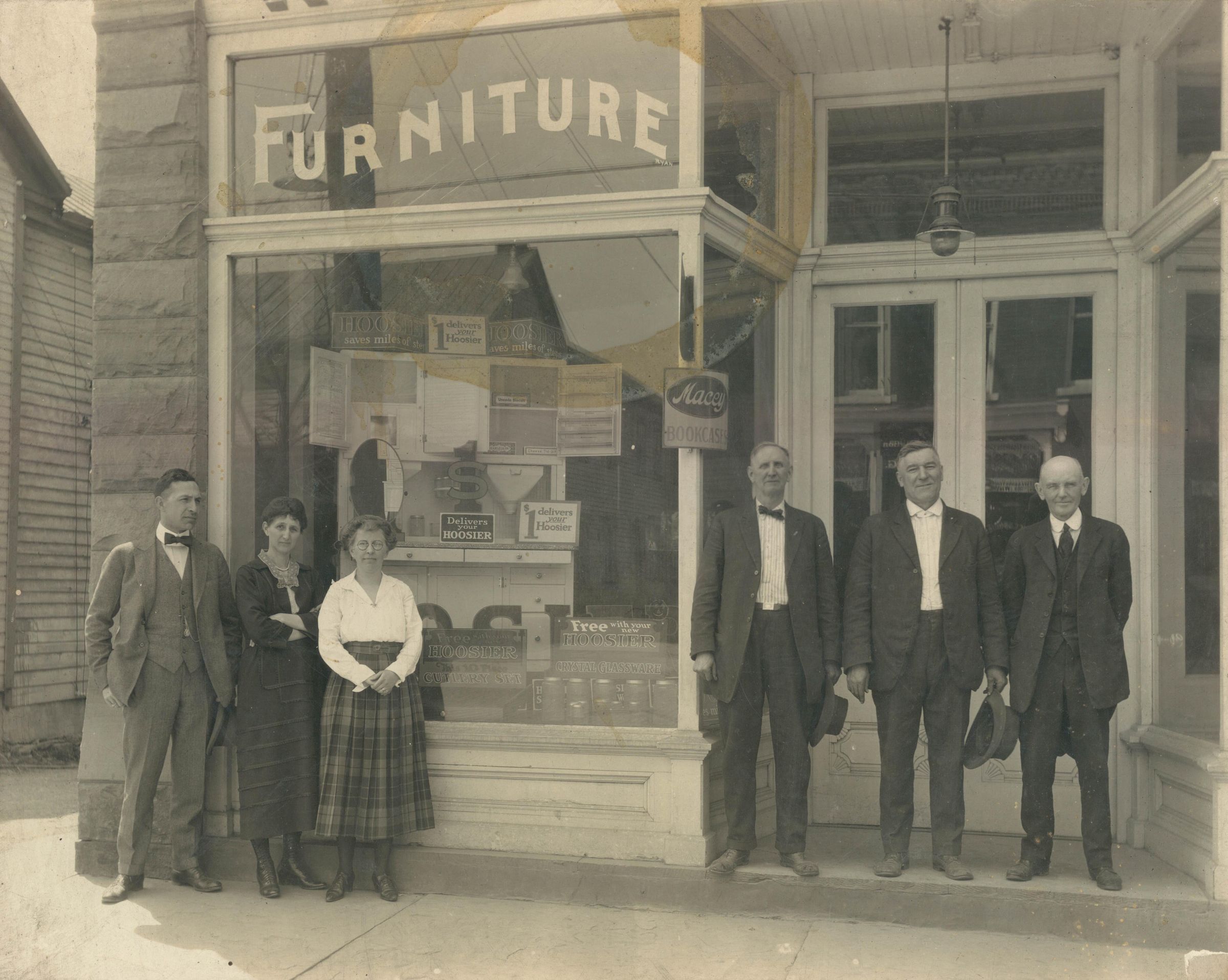 The Huffman family bought the J. H. Ganiear & Son Furniture and Undertaking business from John Hayes Ganiear [1847-1925] after the death of his son, Charles Hedge Ganiear [1871-1908]. The Ganiear family may be viewed with the building in item # PUBL-AN003-0112A.
