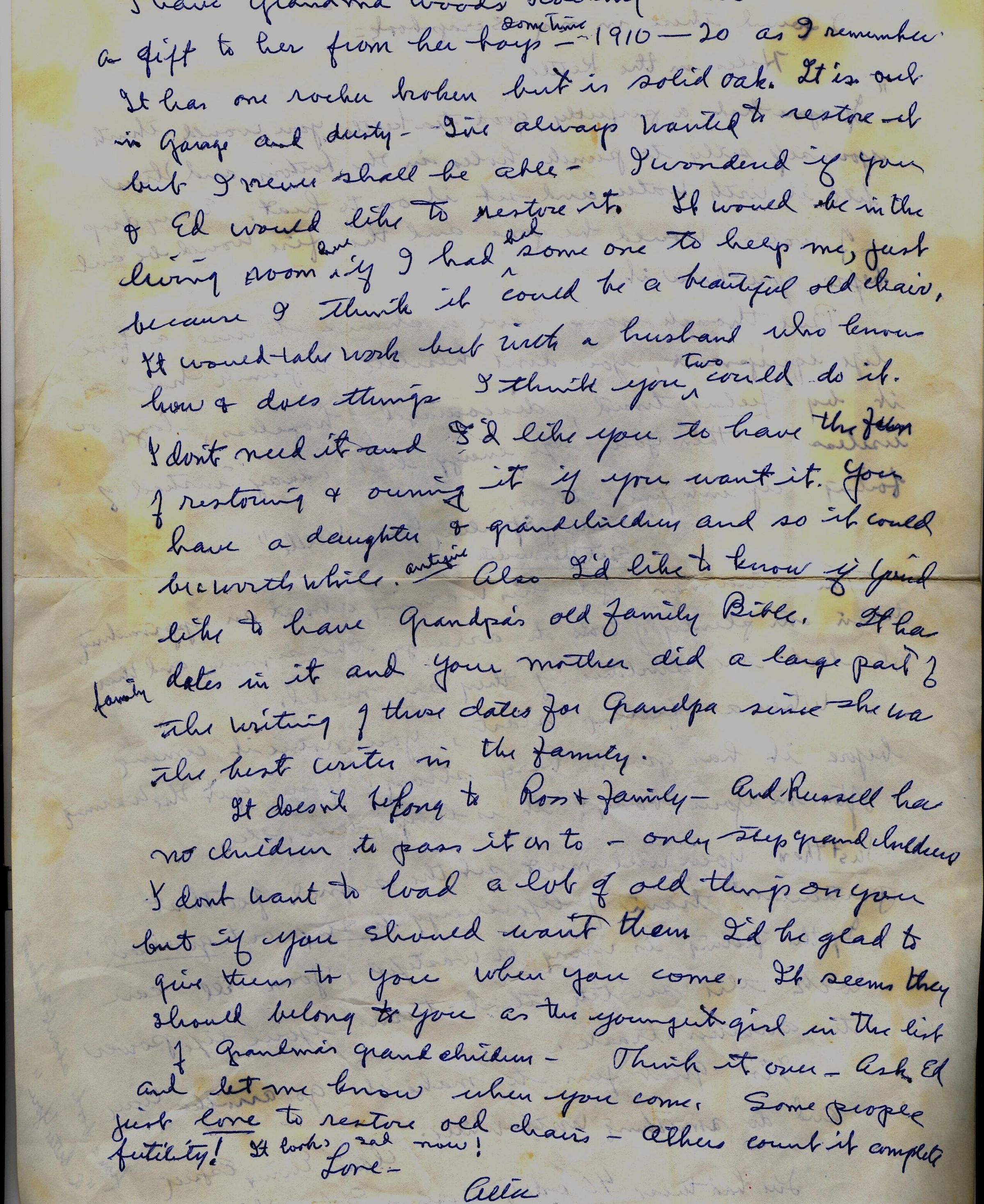 Source Citation: J. H. and Elizabeth (Throckmorton) Wood Family Bible - Letter from Alta (Wood) McCormick to her cousin Edna (Wood) White; item no. WOOD-AN001-0019, Rev. John Harrison and Elizabeth (Throckmorton) Wood Collection, shared by Bill Anderson, Greene Connections Archives Project (www.GreeneConnections.com).